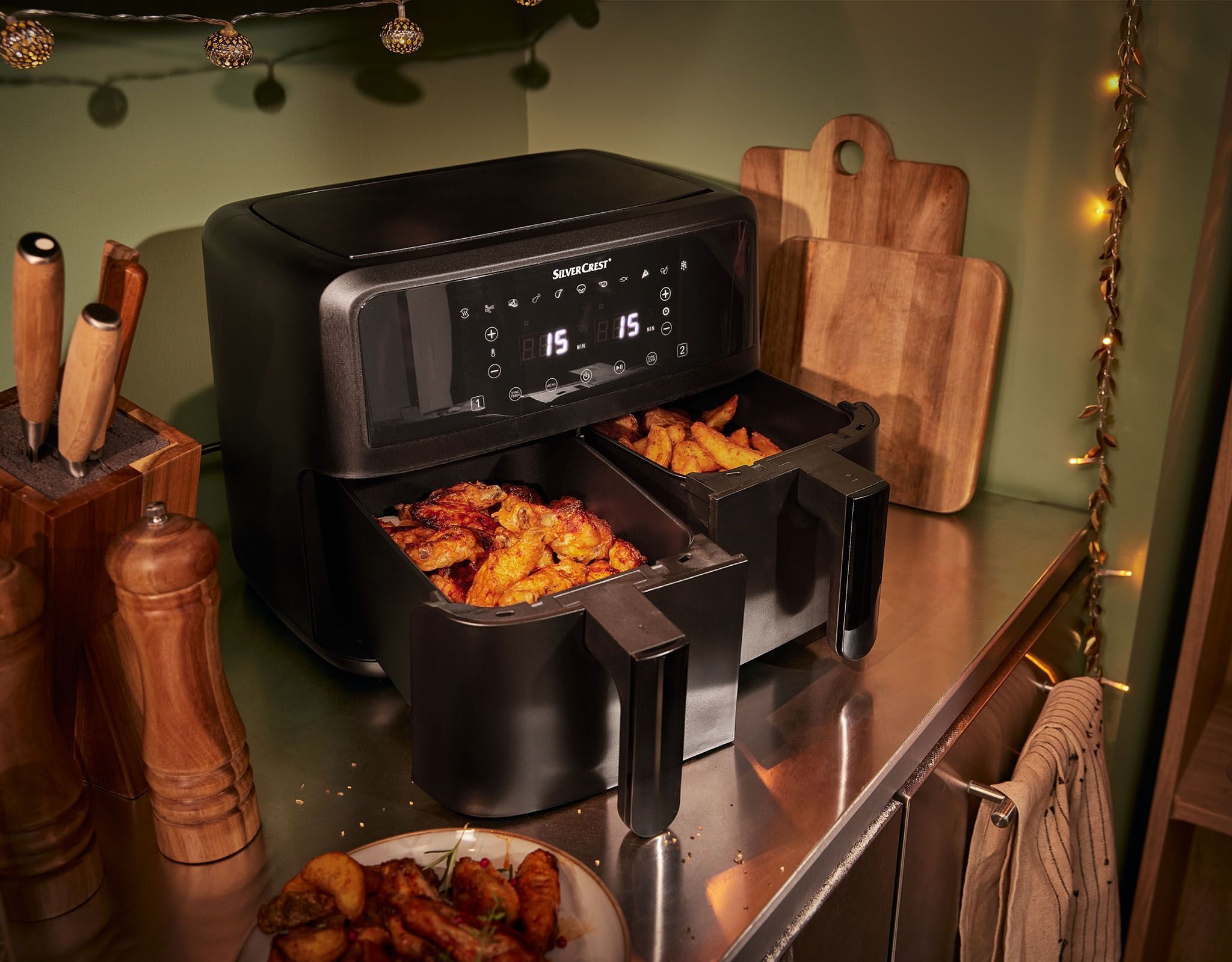 Silvercrest Air Fryer Heißluftfritteuse Digital Doppelzone SHLFD 2600 B1 * B-Ware