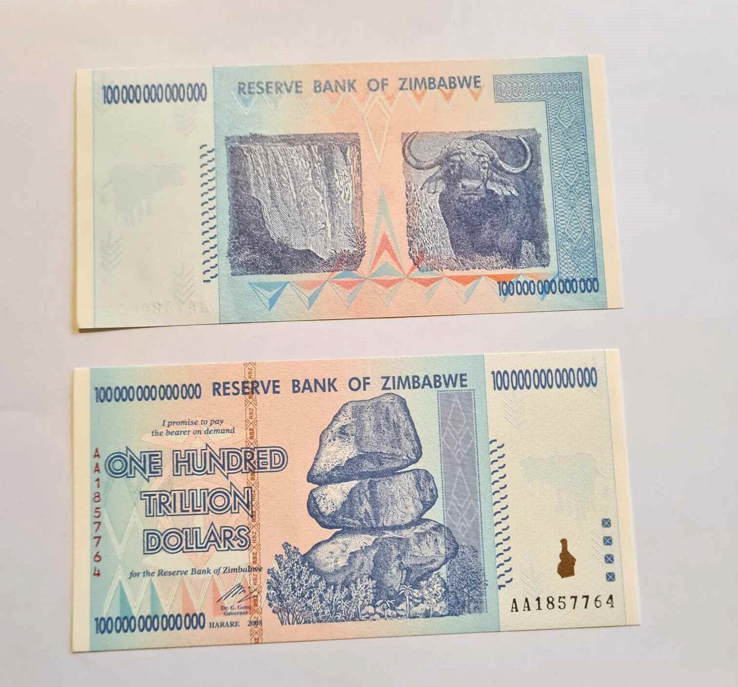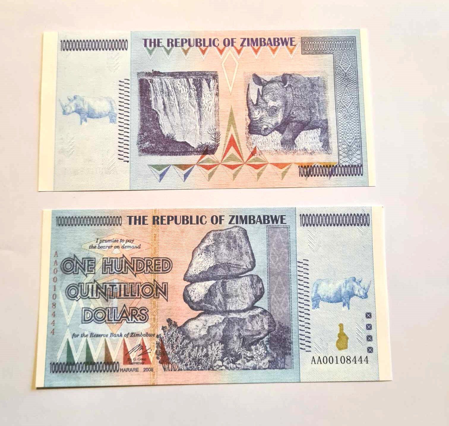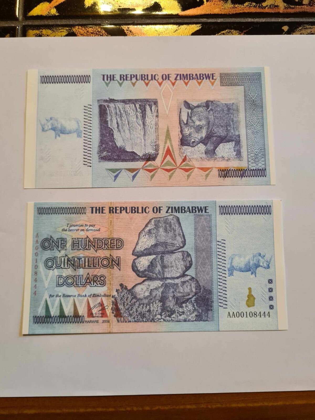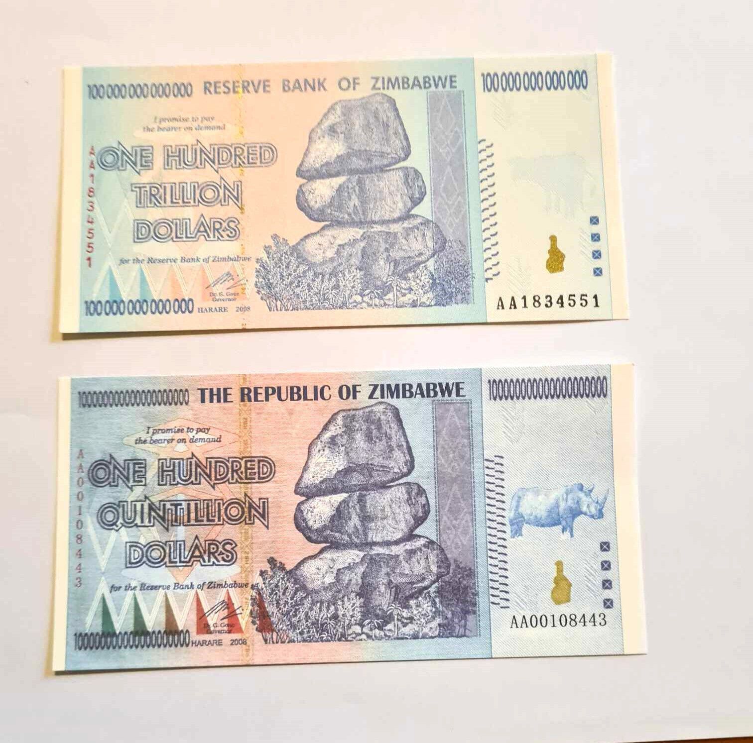 Simbabwe 2008/1 x 100 Trillion $ + 1 x Quintillion/AA Banknote/ BF/UNC(1802242)