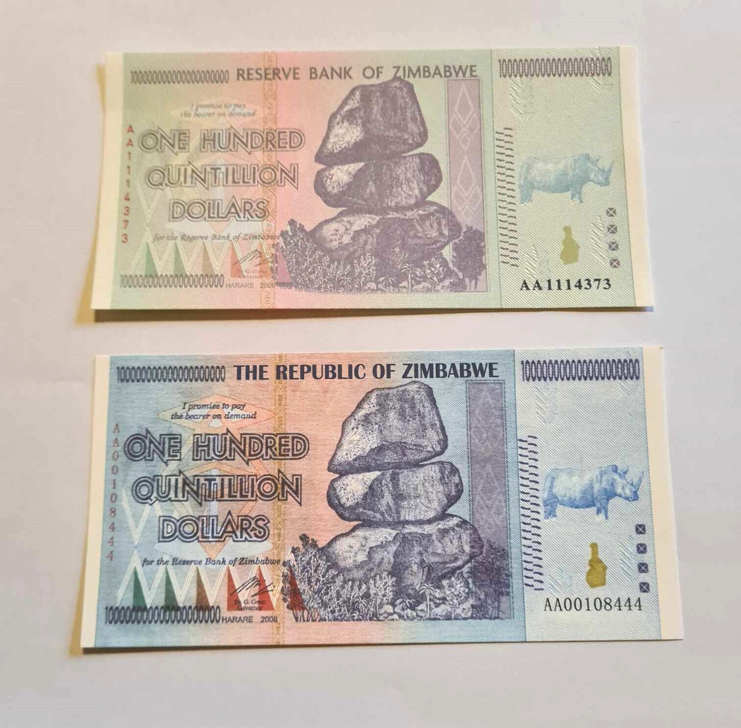 Simbabwe 2008/2 x AA Quintillion Dollar (1x blau + 1 x grün)/ Bankfrisch/UNC(180224)