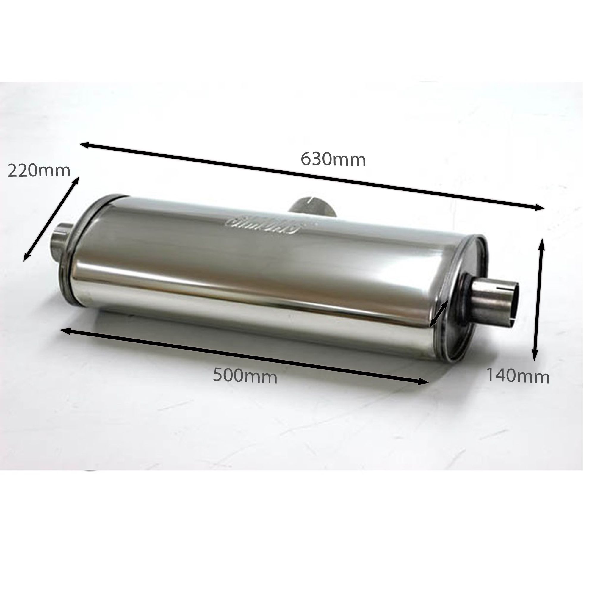 SIMONS Edelstahl Schalldämpfer Universell DUPLEX 63MM 51MM Hochglanz