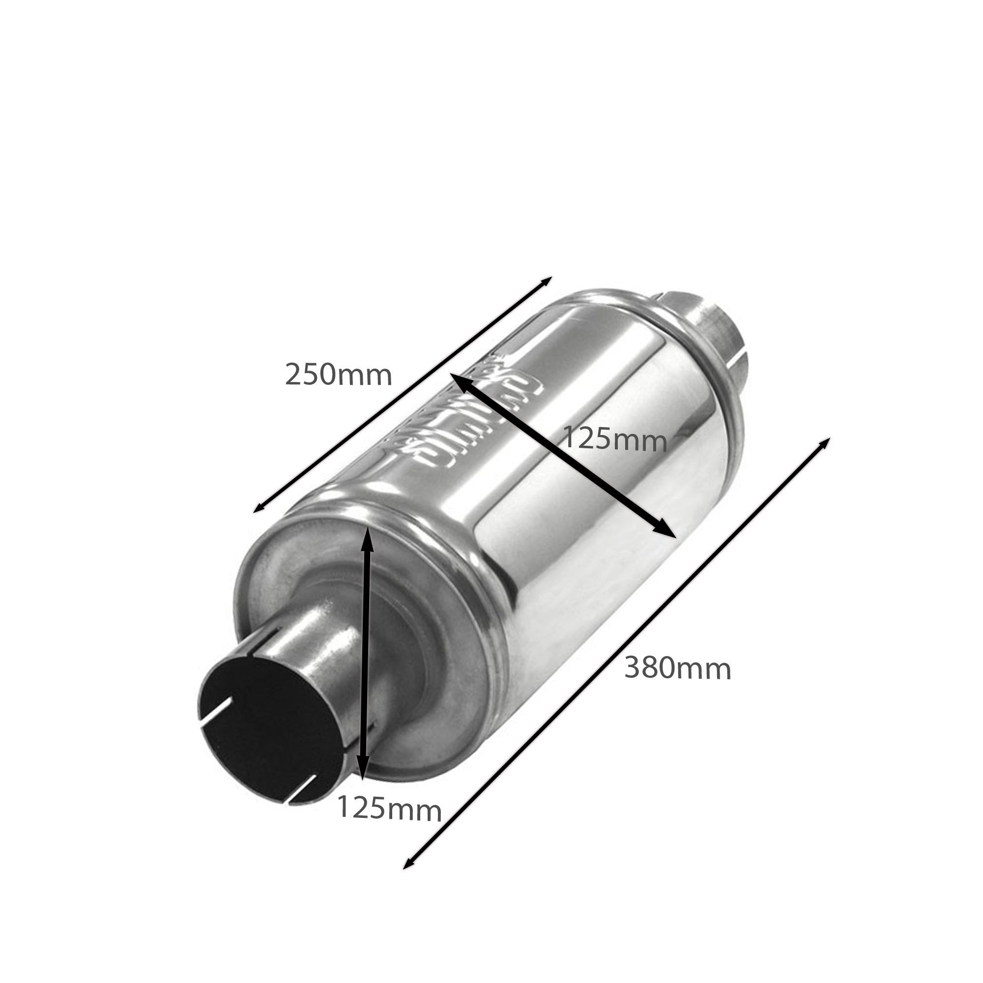 SIMONS Universal Edelstahl Schalldämpfer TOPF Auspuff LEISE - 63MM GLANZ