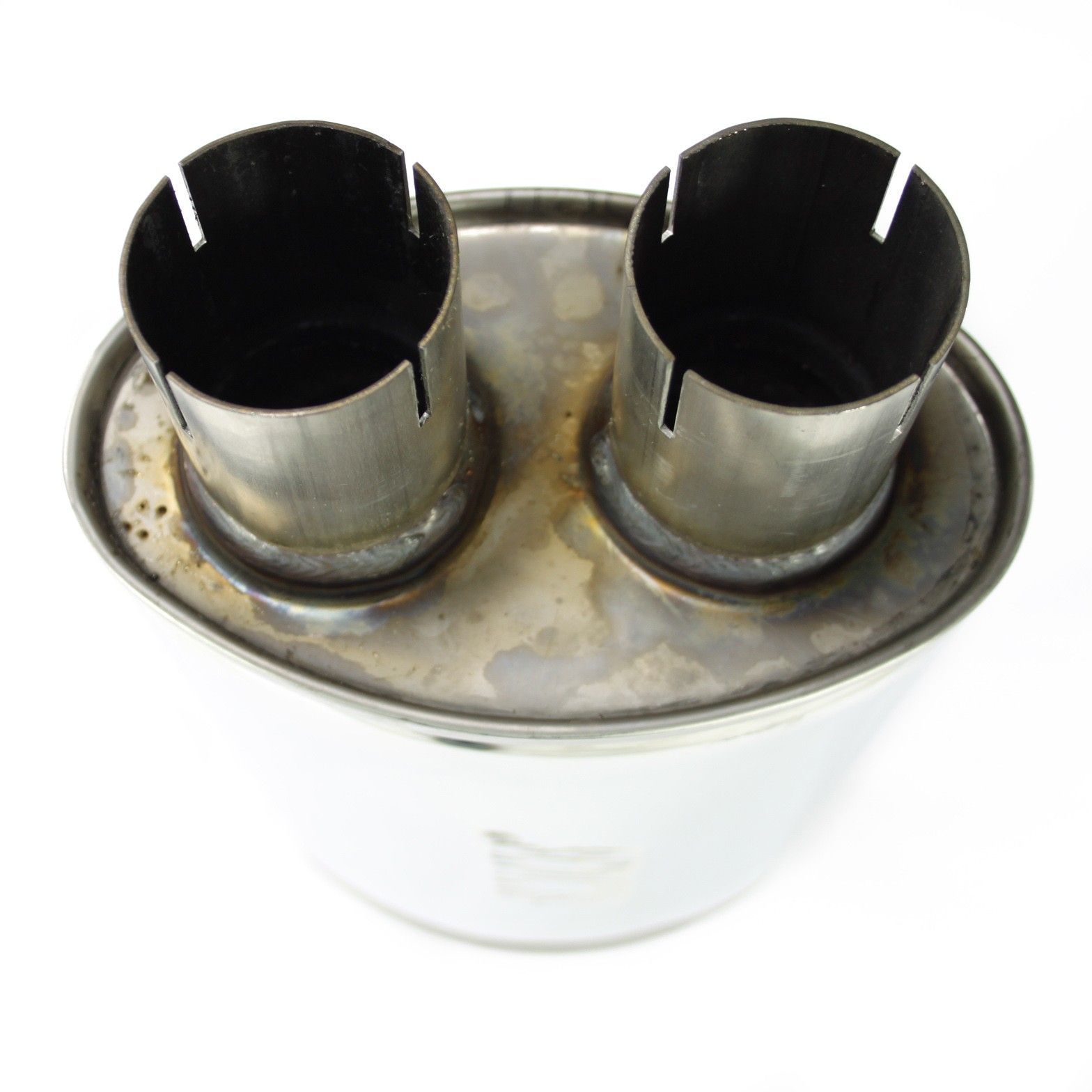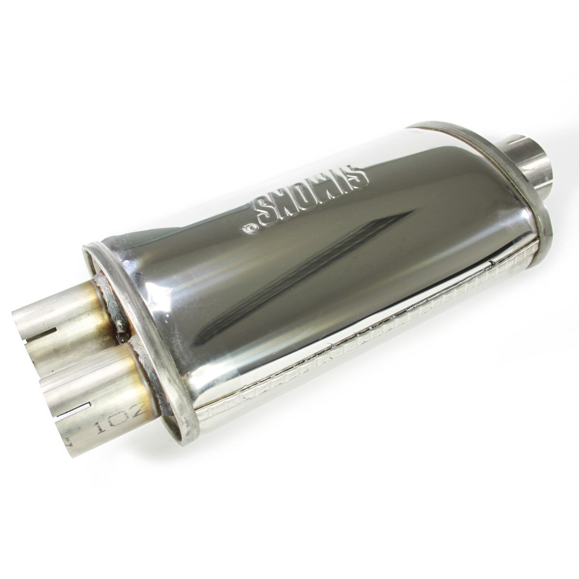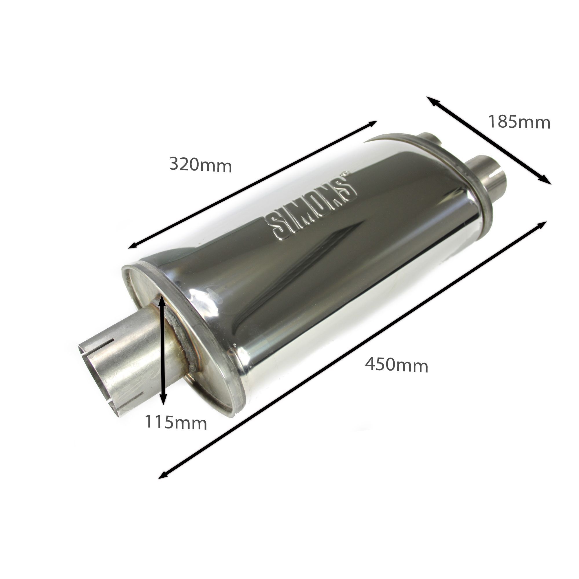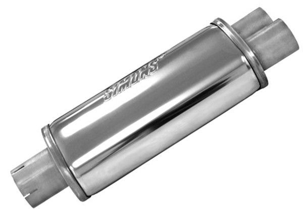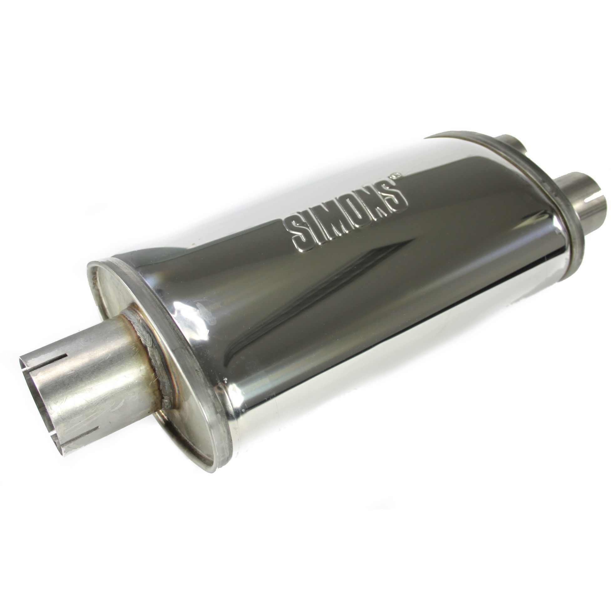 SIMONS Universal Edelstahl Schalldämpfer TOPF Auspuff LEISE - "SPLIT" 63MM GLANZ