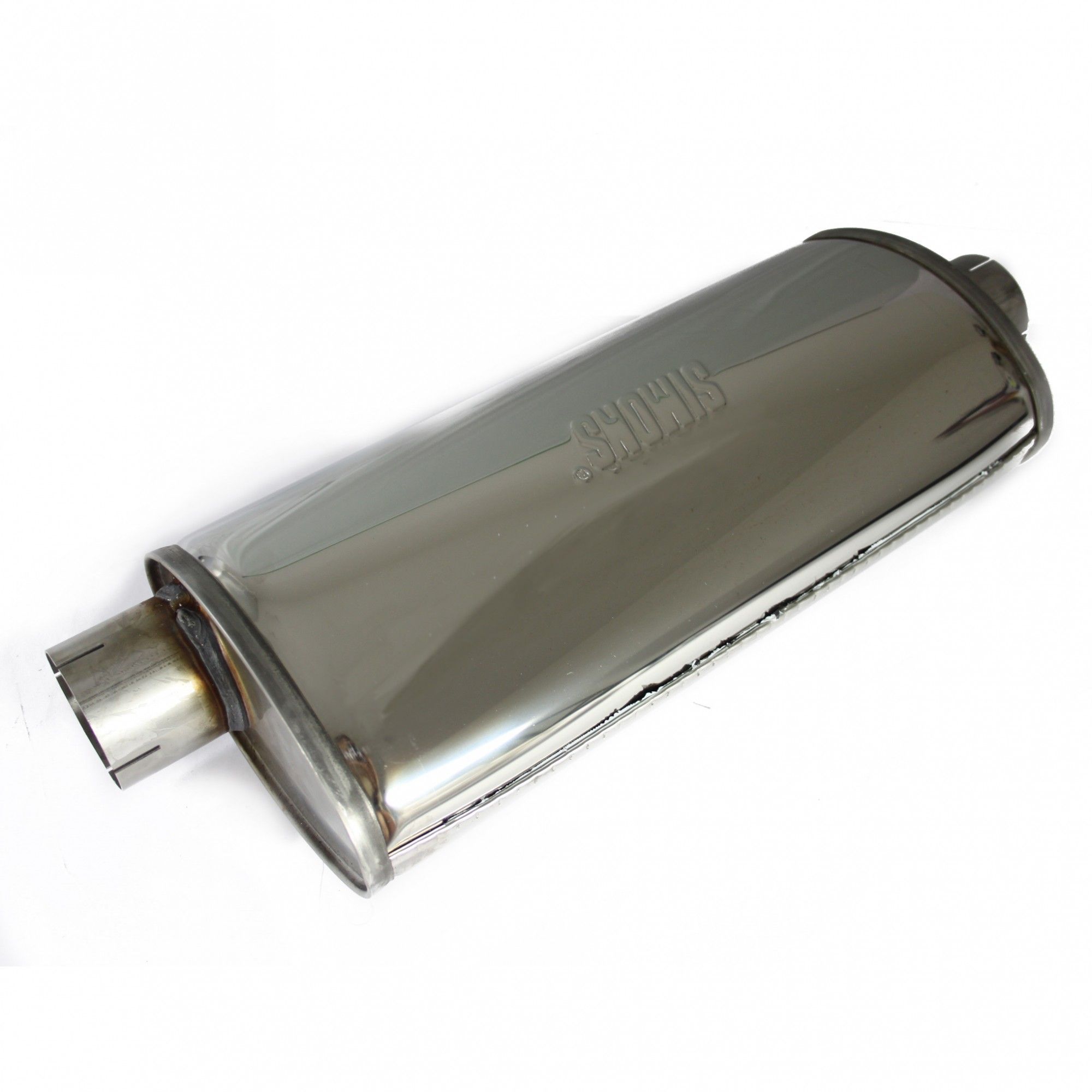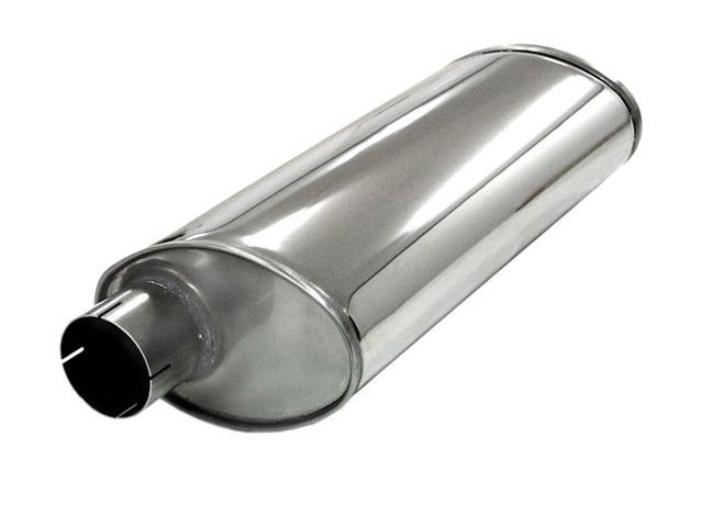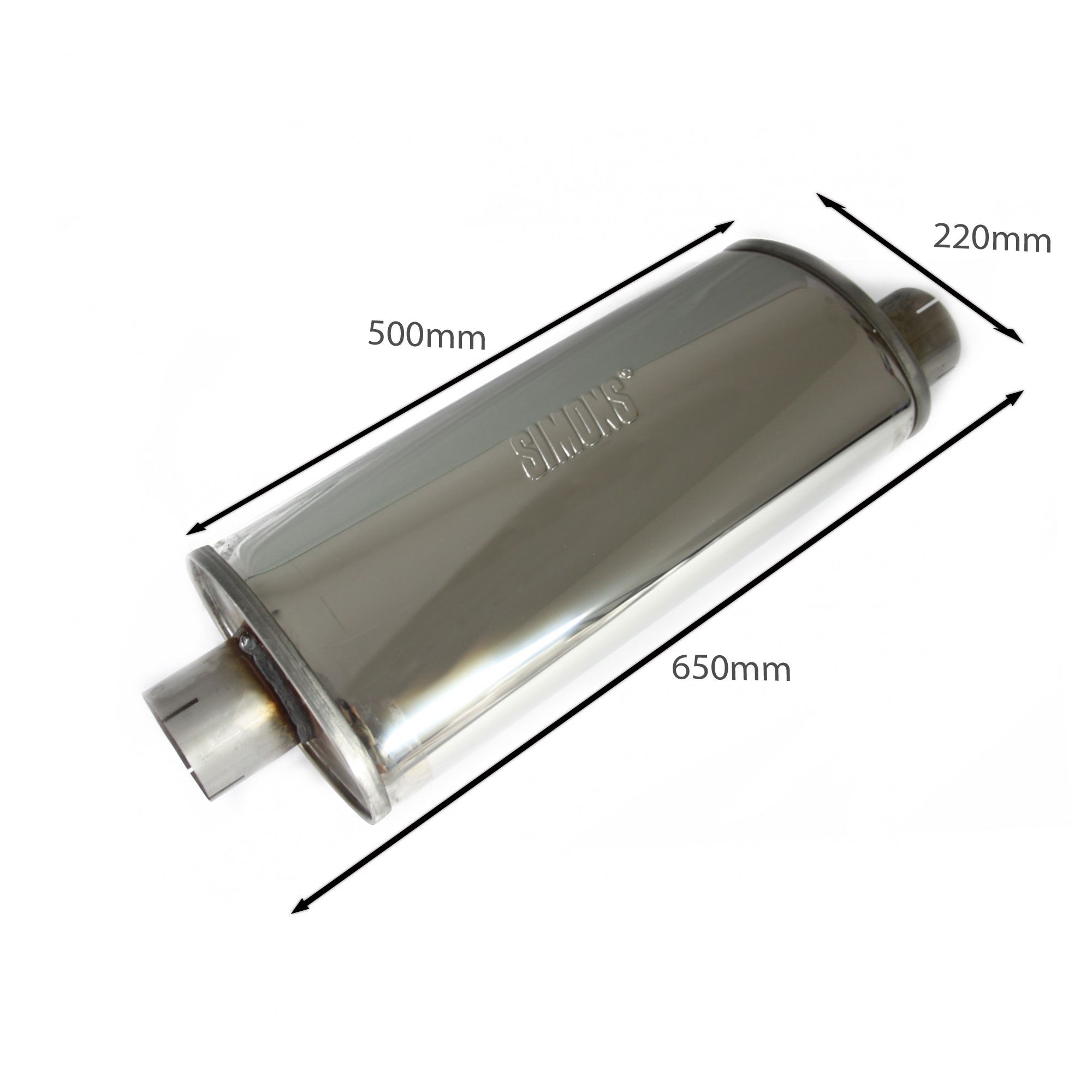 SIMONS Universal Edelstahl Schalldämpfer TOPF Auspuff LEISE - "TURBO" 76MM GLANZ
