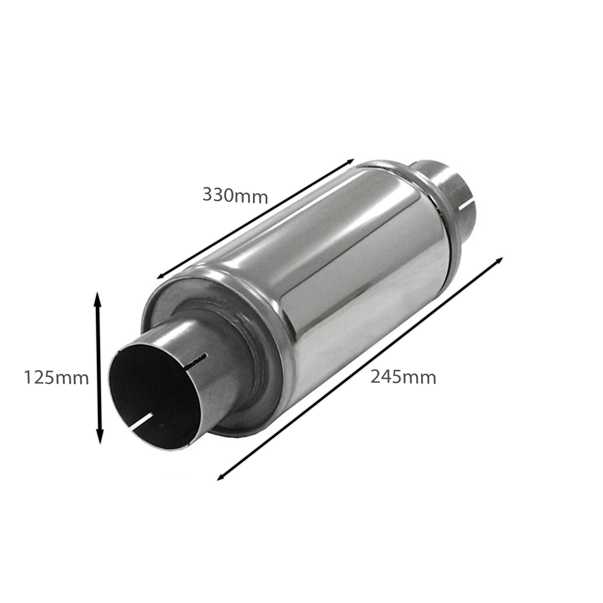 SIMONS Universal Edelstahl Schalldämpfer TOPF Auspuff LEISE - "TURBONETT" 76MM