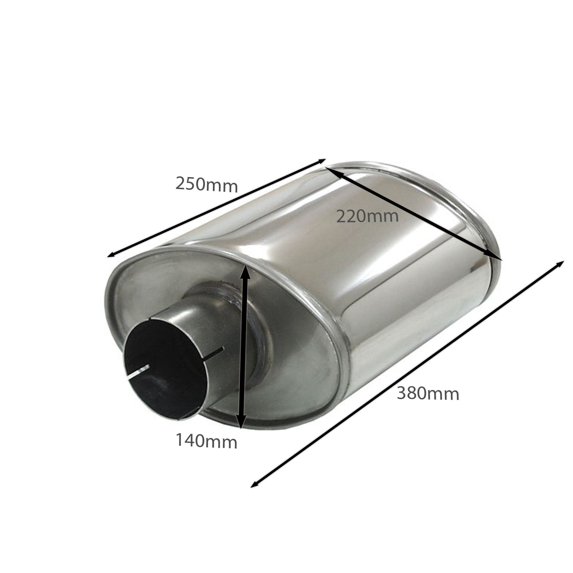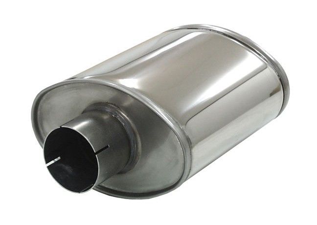 SIMONS Universal Edelstahl Schalldämpfer TOPF Auspuff LEISE - "TURBOTIGHT" 76MM GLANZ