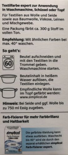 • Simplicol Textilfarbe intensiv all in 1 -Flüssige Rezeptur "Elegantes Grau Neu!