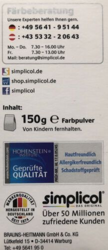 • Simplicol Textilfarbe expert - Efeu Grün - auch füe Wolle & Seide - 150 gr