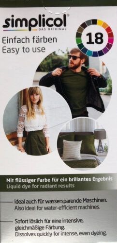 Simplicol Textilfarbe intensiv all in 1 -Flüssige Rezeptur "Oliv Grün" Neu!