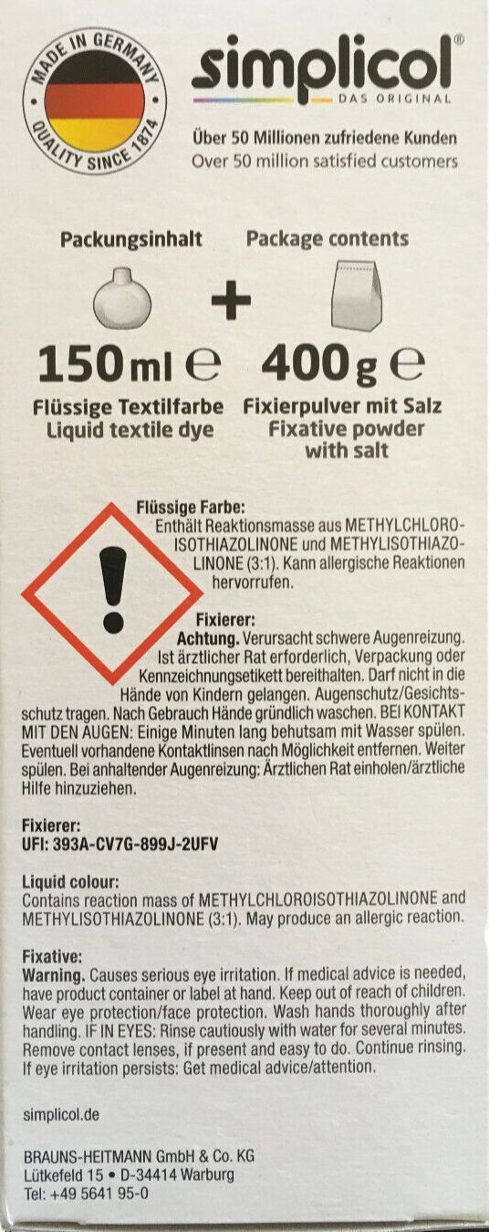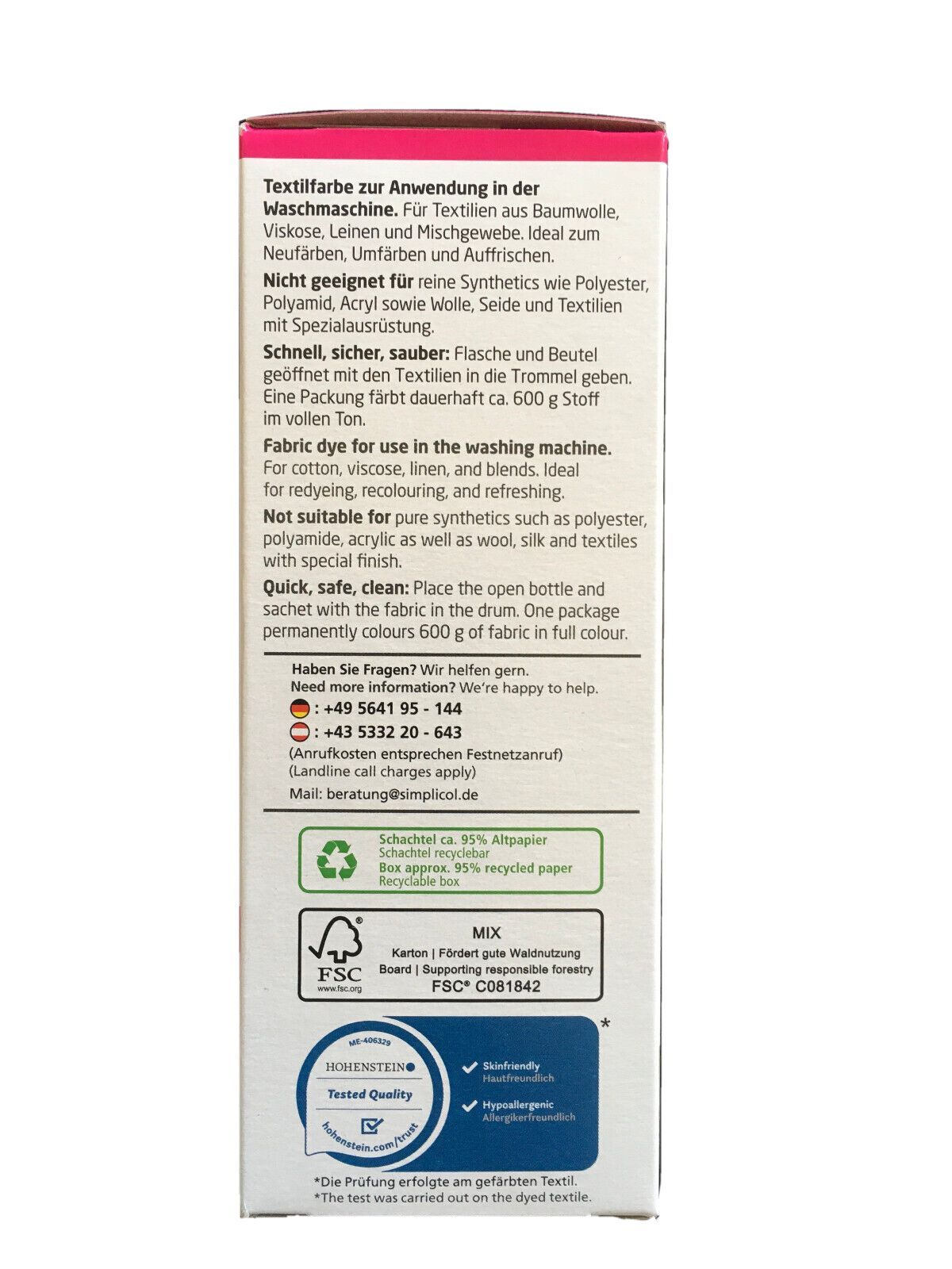 Simplicol Textilfarbe intensiv all in 1 -Flüssige Rezeptur "Pink Berry" Neu