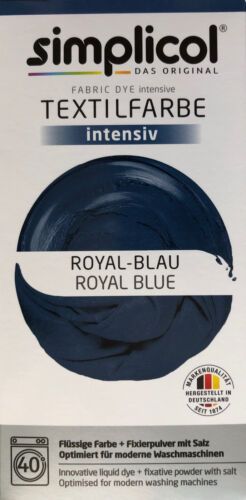 Simplicol Textilfarbe intensiv all in 1 -Flüssige Rezeptur "Royal Blue" Neu!