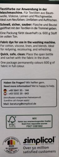 Simplicol Textilfarbe intensiv all in 1 -Flüssige Rezeptur "Wald-Grün" Neu!