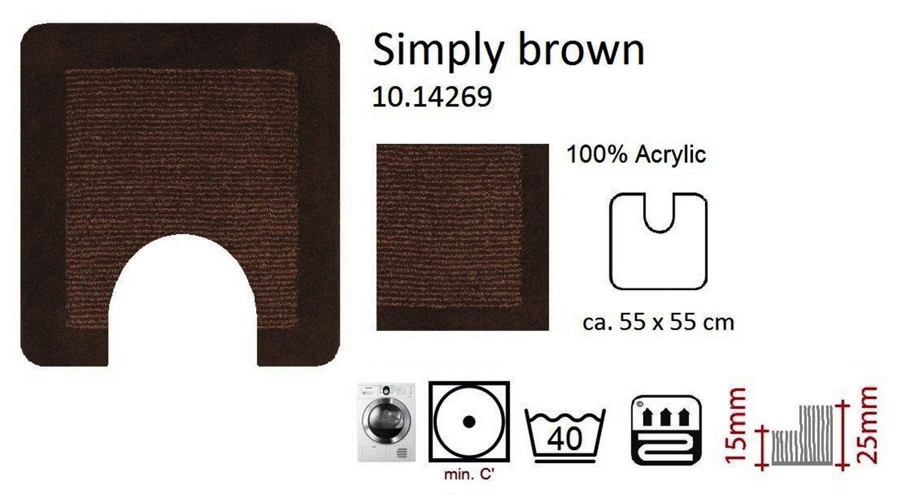 Simply Brown / Warmbraun WC-Vorleger mit Ausschnitt 55x55cm Hochflor 15-25mm