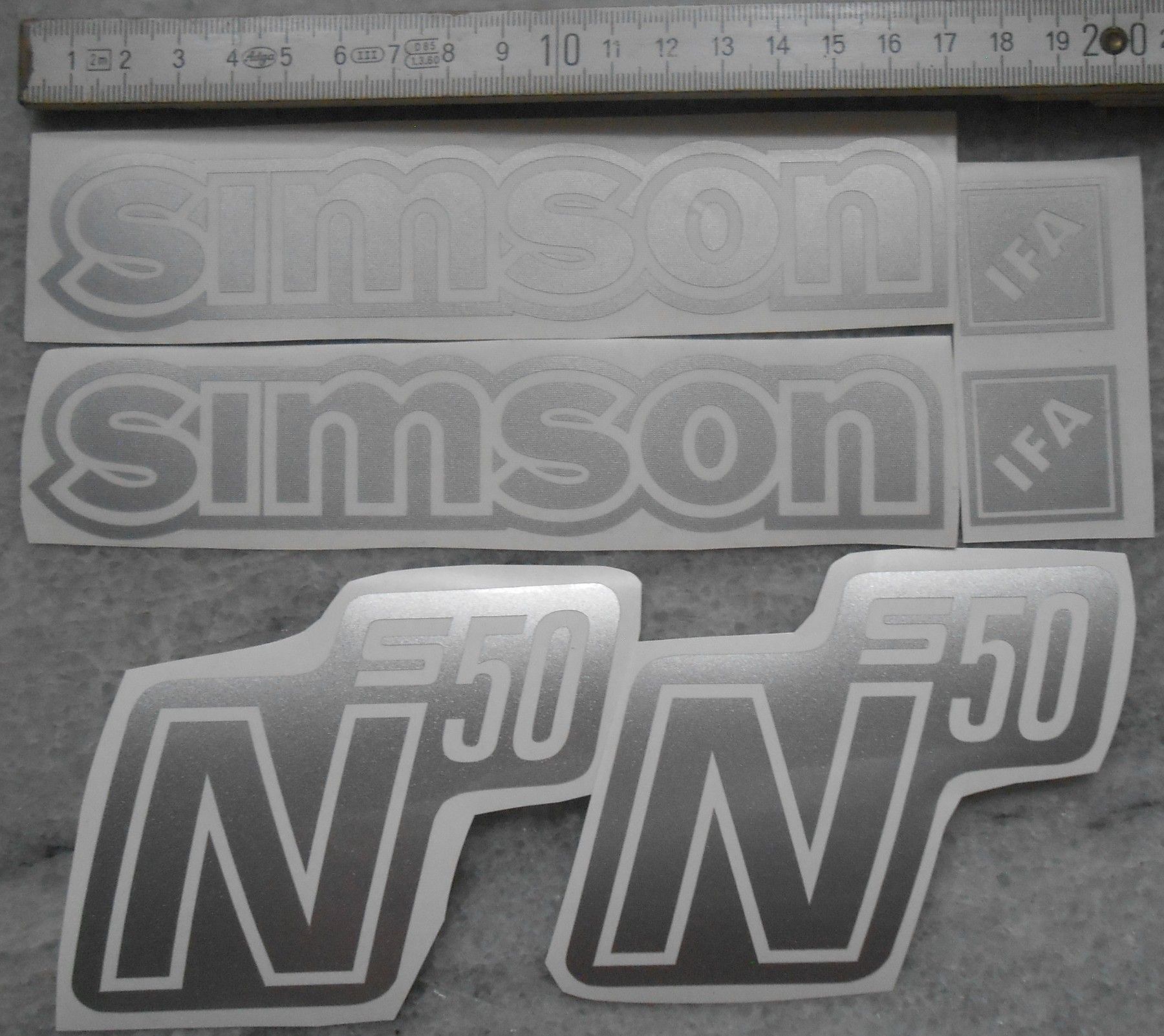 Simson, Aufkleber, IFA, Seitendeckel, Tank, S50N , ilber, transparenter HG
