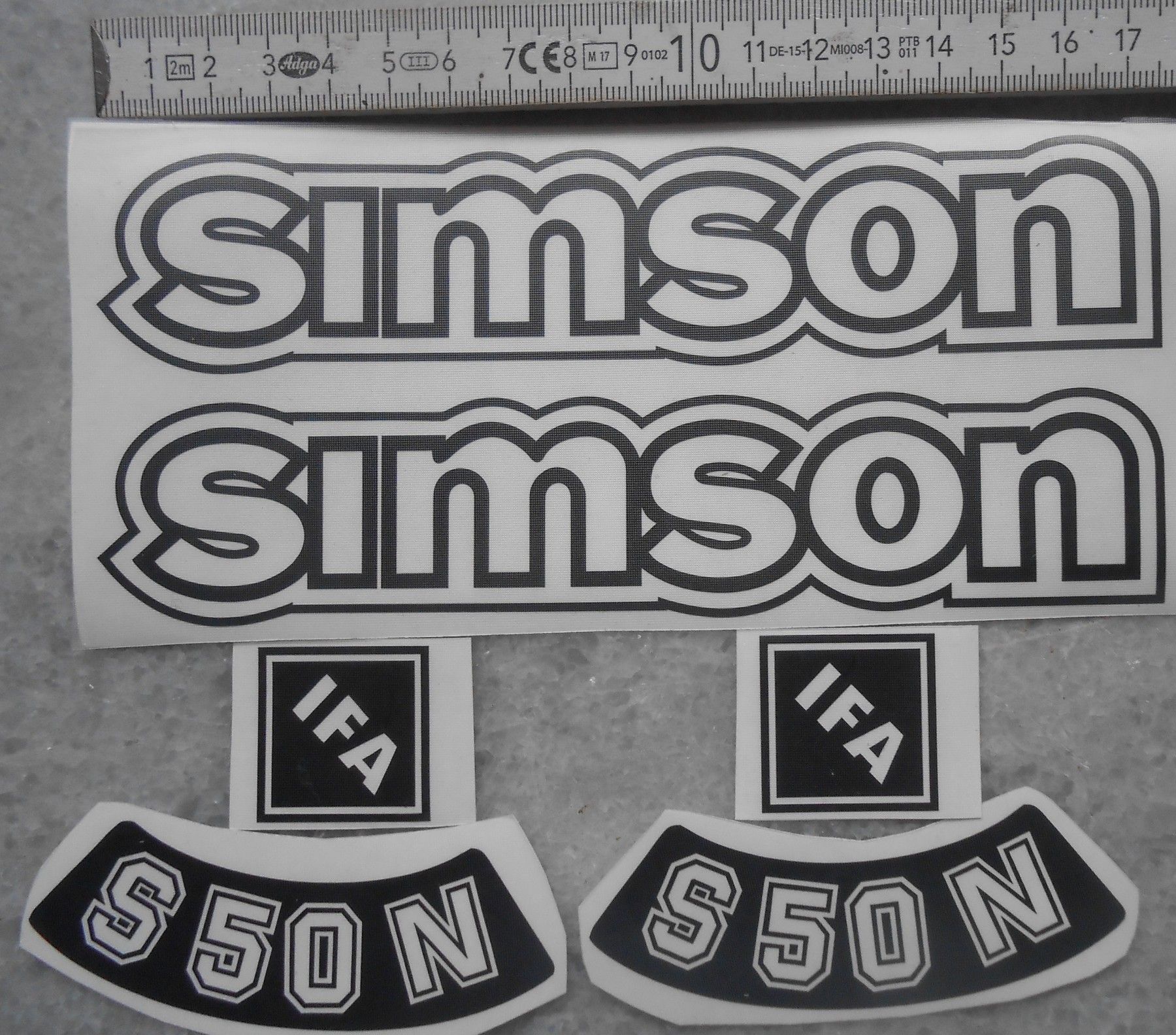 Simson, Aufkleber, IFA, Seitendeckel, Tank, S50N, Schwarz, transparenter HG, Oldtimer
