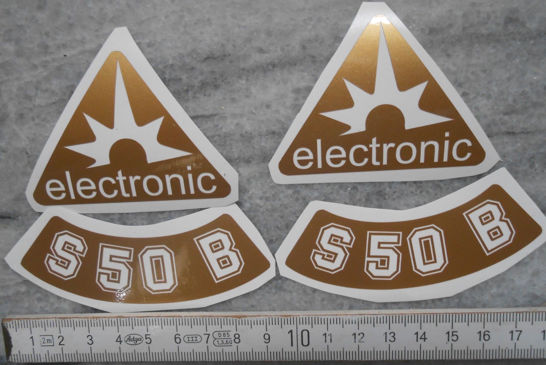 Simson, Aufkleber, Seitendeckel S50B, electronic, Gold transparenter HG