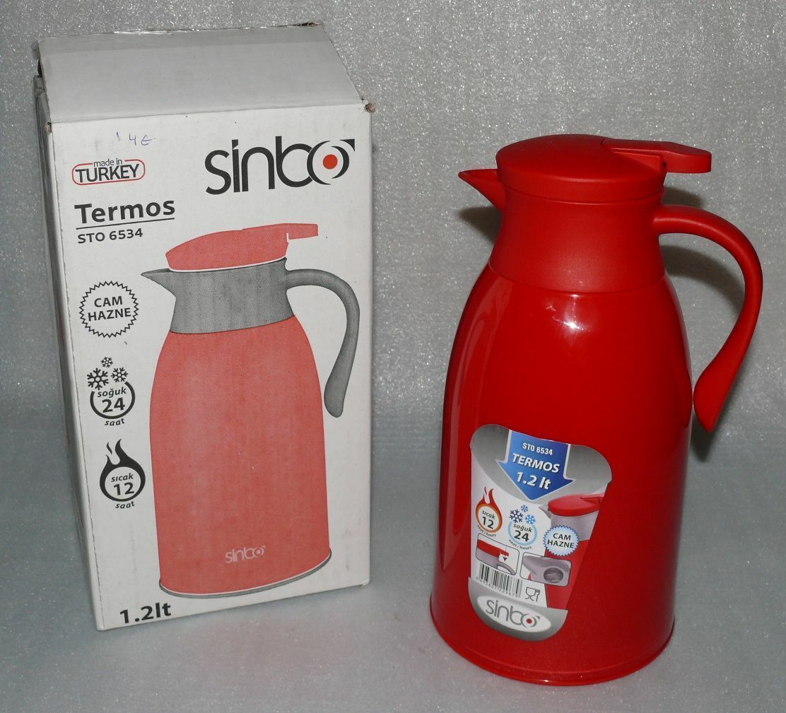 Sinbo Sinbo STO6534 EASY Kaffee Kanne Thermoskanne 1,2L Glas Reservuar H-29cm Hot Rot