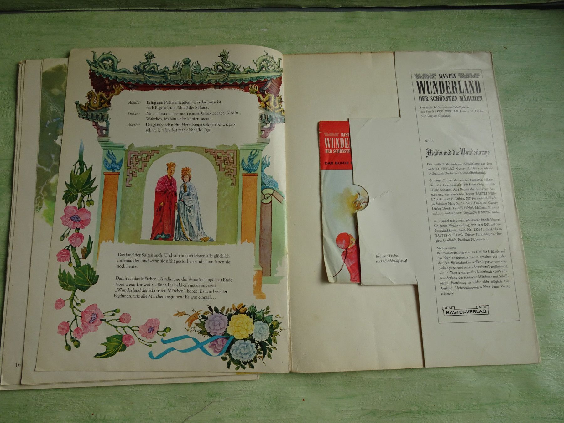 Single bunte Bilderbuch Schallplatte Bastei Wunderland 15 Aladin & die Wunderlampe