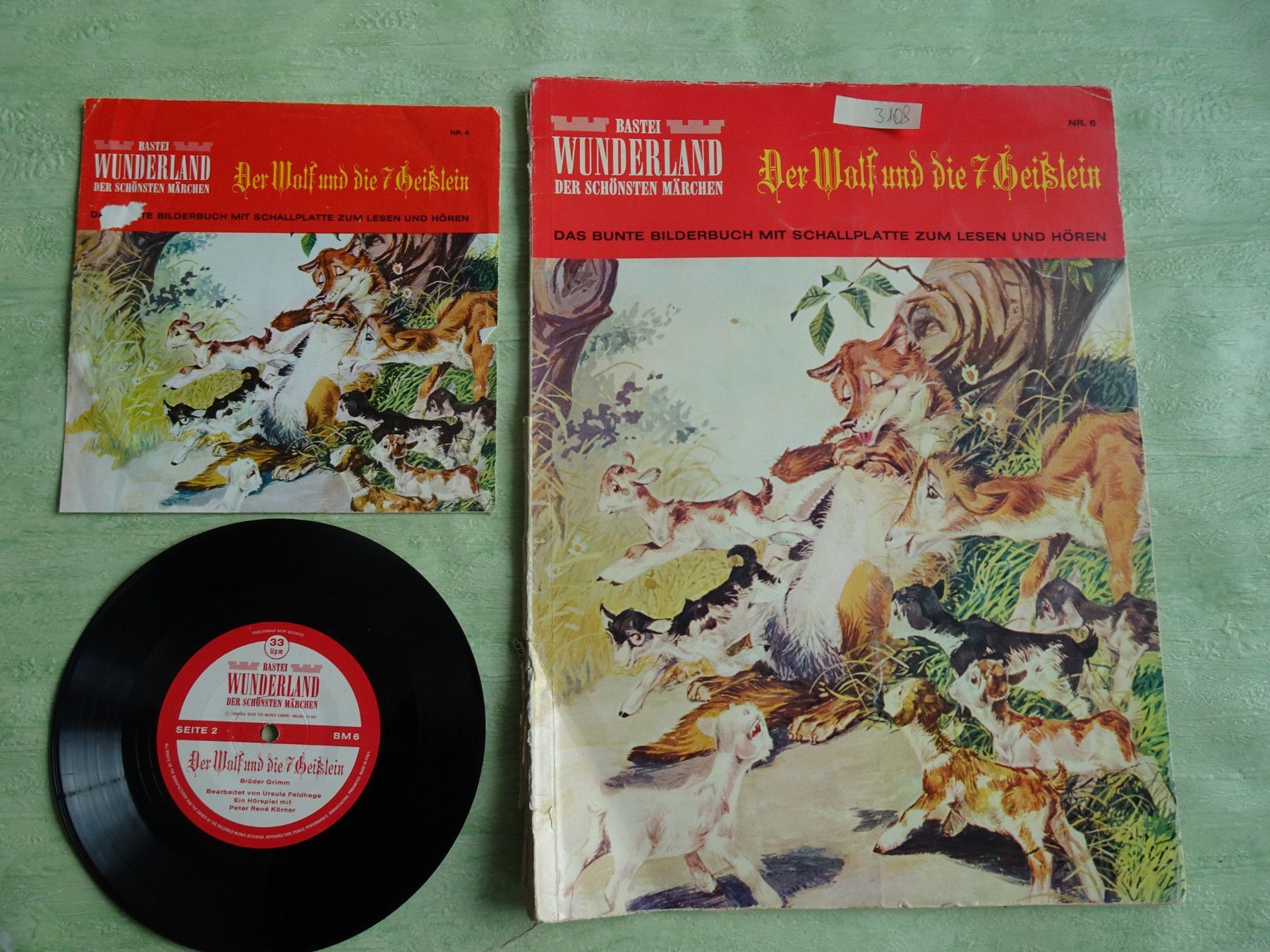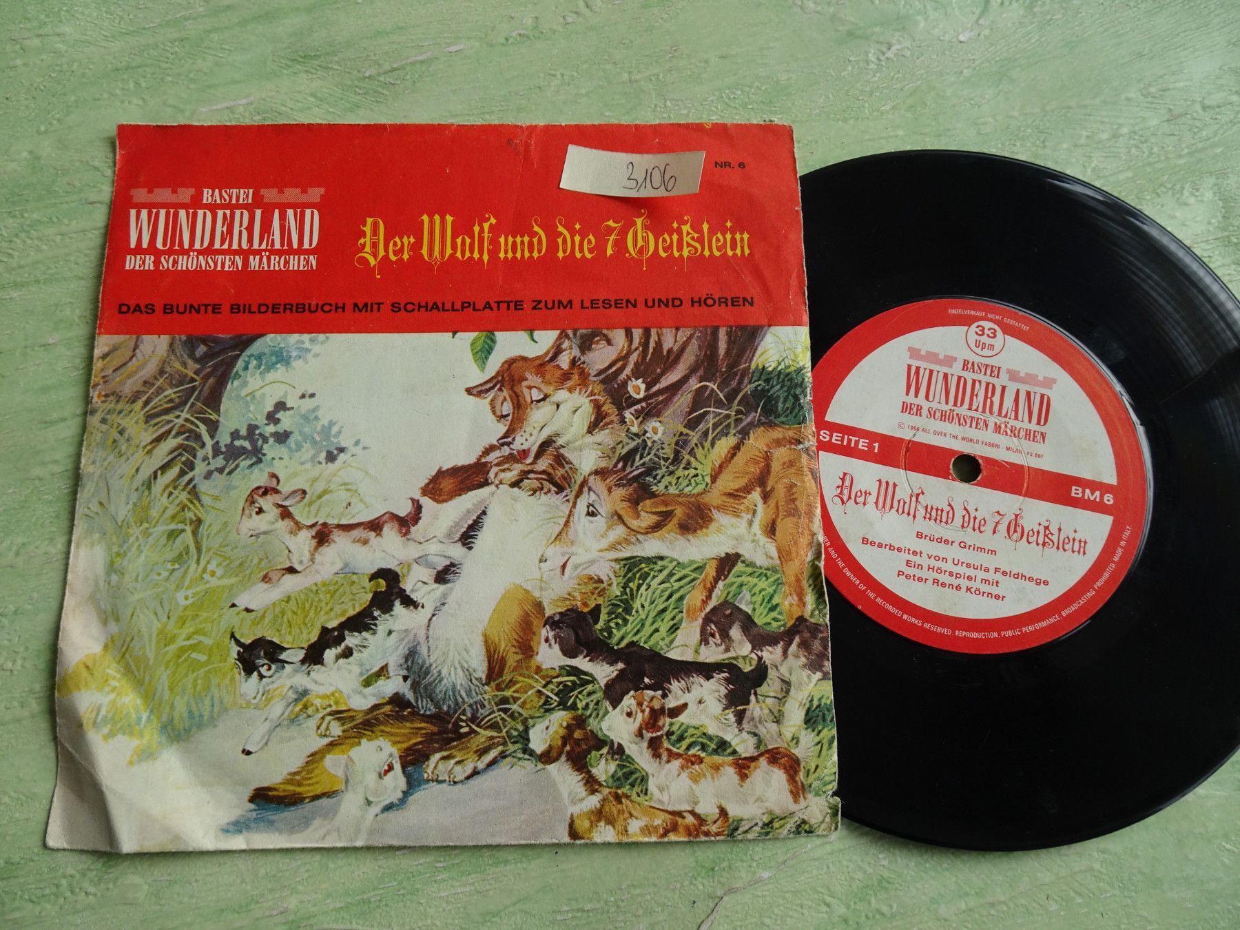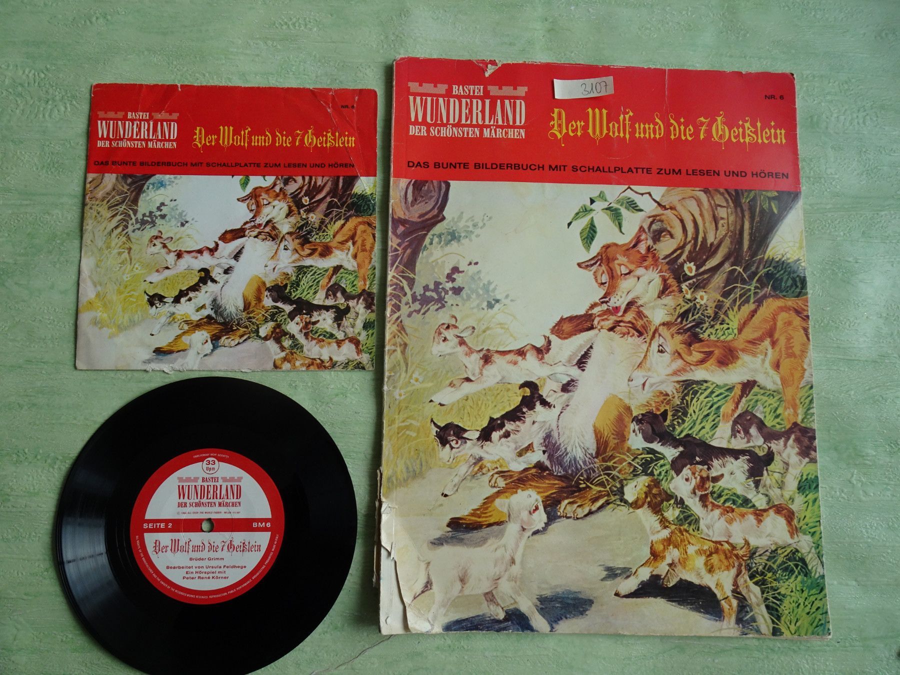 Single bunte Bilderbuch Schallplatte Bastei Wunderland Nr 6 Der Wolf & die 7 Geißlein