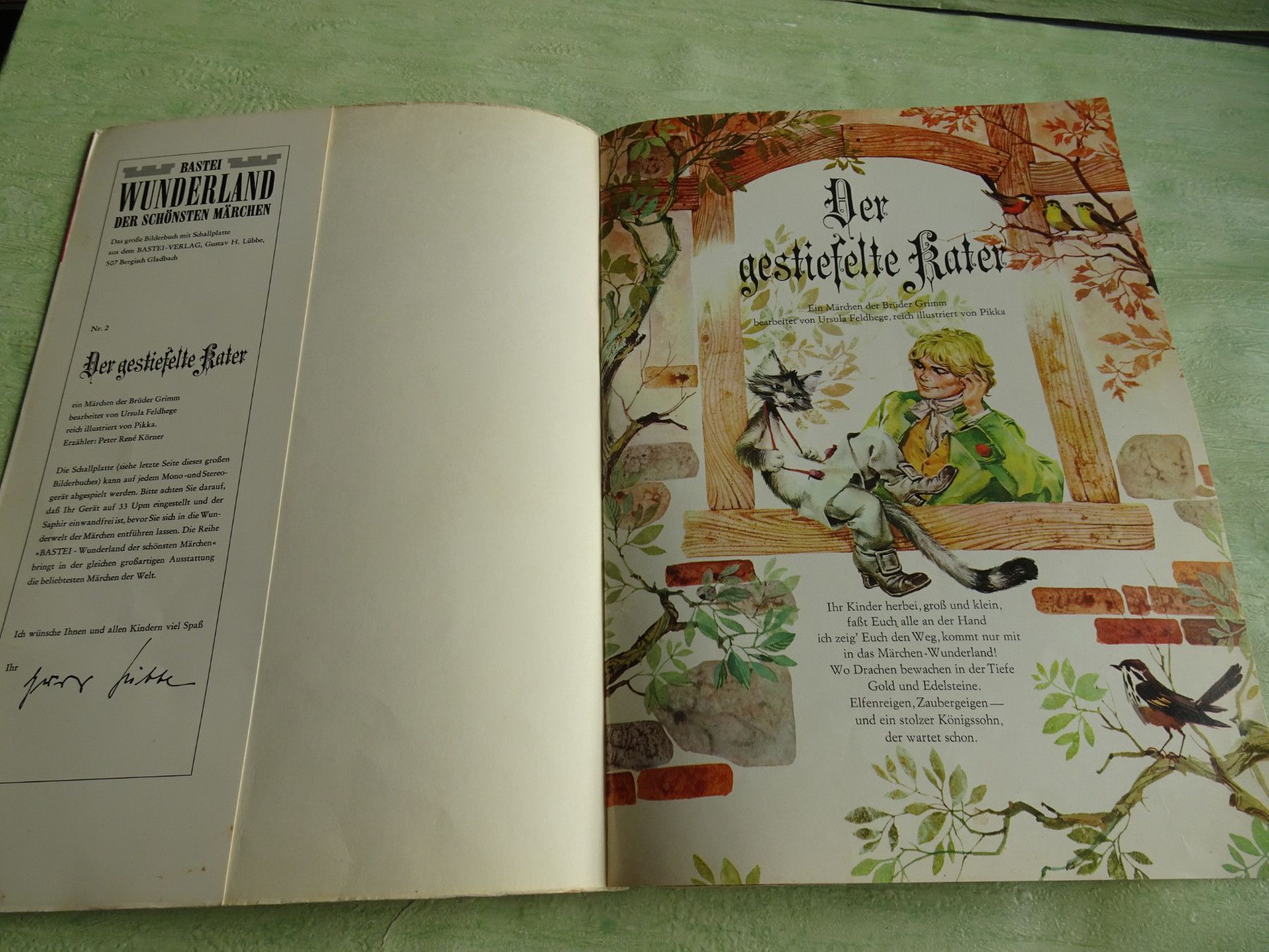 Single Das bunte Bilderbuch mit Schallplatte Bastei Wunderland Nr 2 gestiefelte Kater