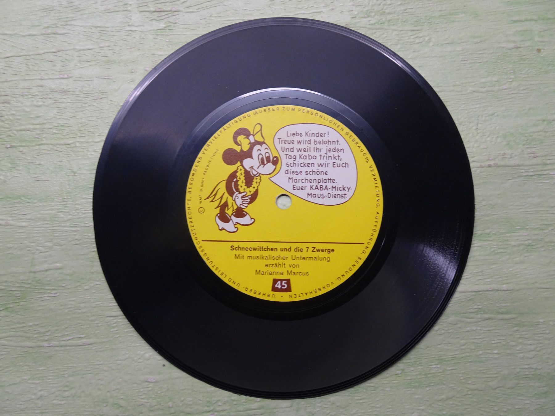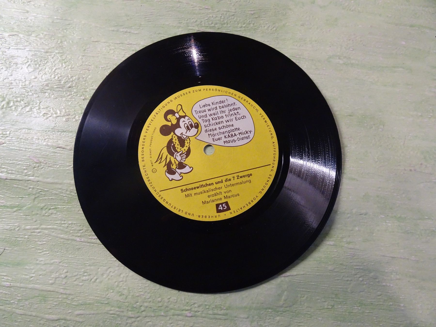 * * * Sammeln & Seltenes - Hörspiel Vinyl * * * * ... aus Freude an schönen Dingen ..... Vinyl - Schallfolie - Single - 7 Copyright Walt Disney mit musikalischer Untermalung erzählt von Marianne Marcus optische Bewertung offene Cover, die aber ohne Aufwand geklebt werden können, bewerte ich nich