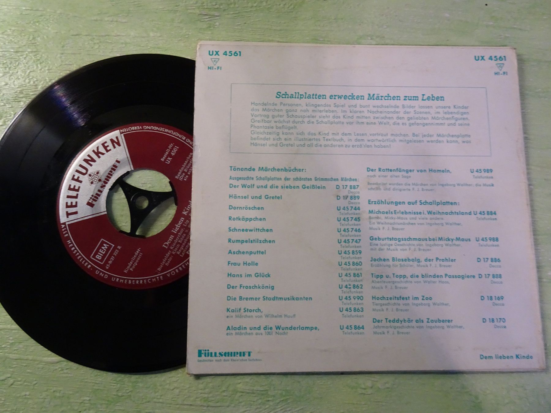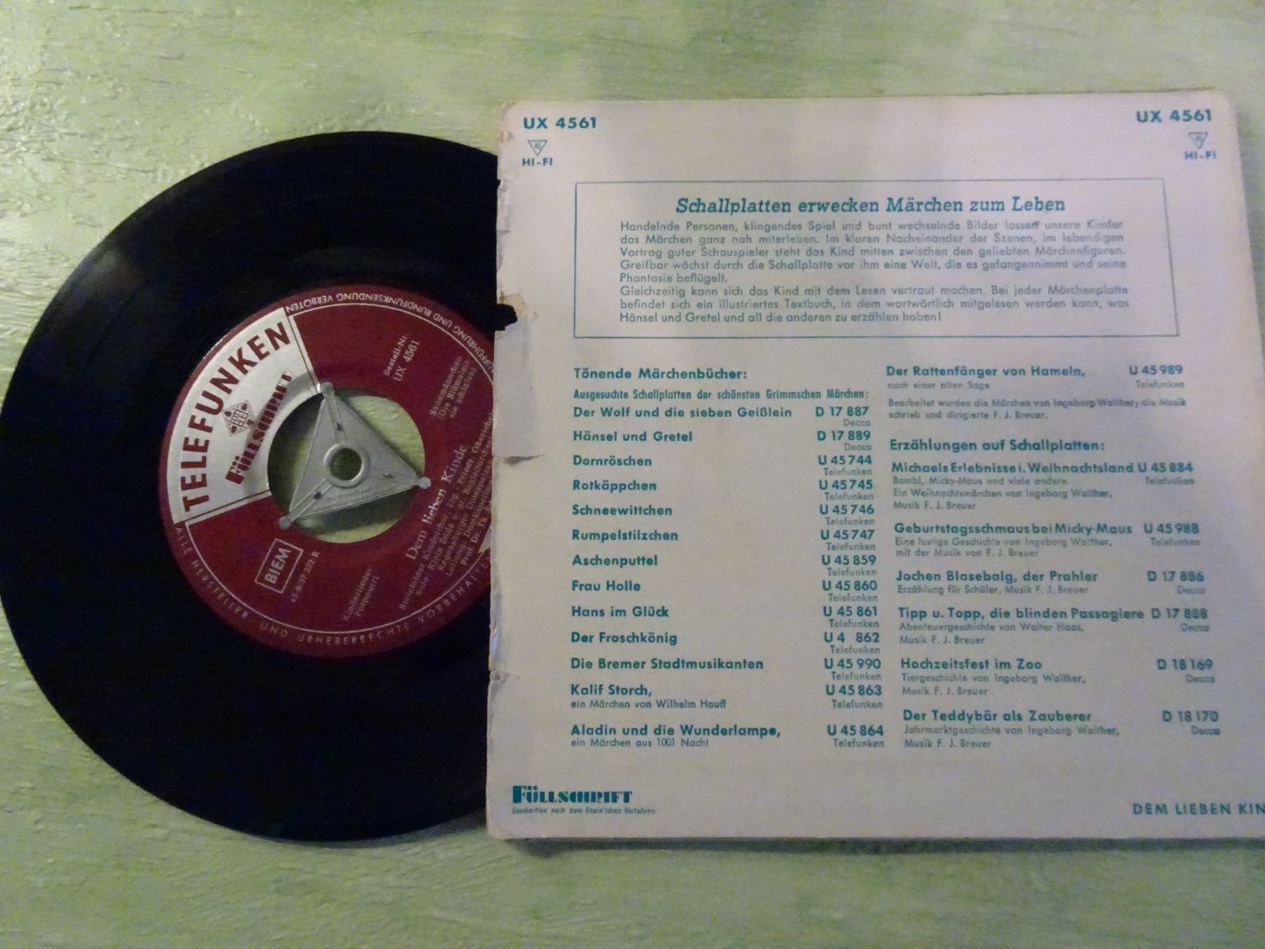 * * * Sammeln & Seltenes - Hörspiel Vinyl * * * * ... aus Freude an schönen Dingen ..... Vinyl - Schallfolie - Single - 7 Telefunken Füllschrift UX4561 optische Bewertung offene Cover, die aber ohne Aufwand geklebt werden können, bewerte ich nicht als defekt keine professionelle Reinigung Single