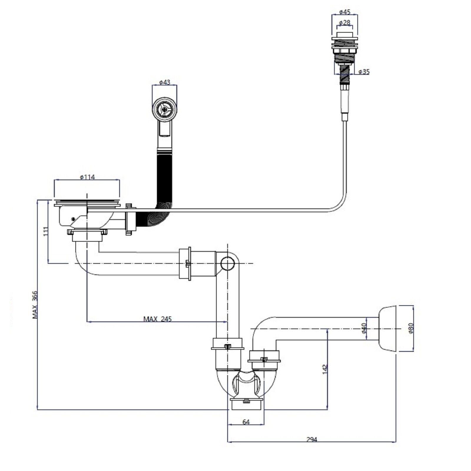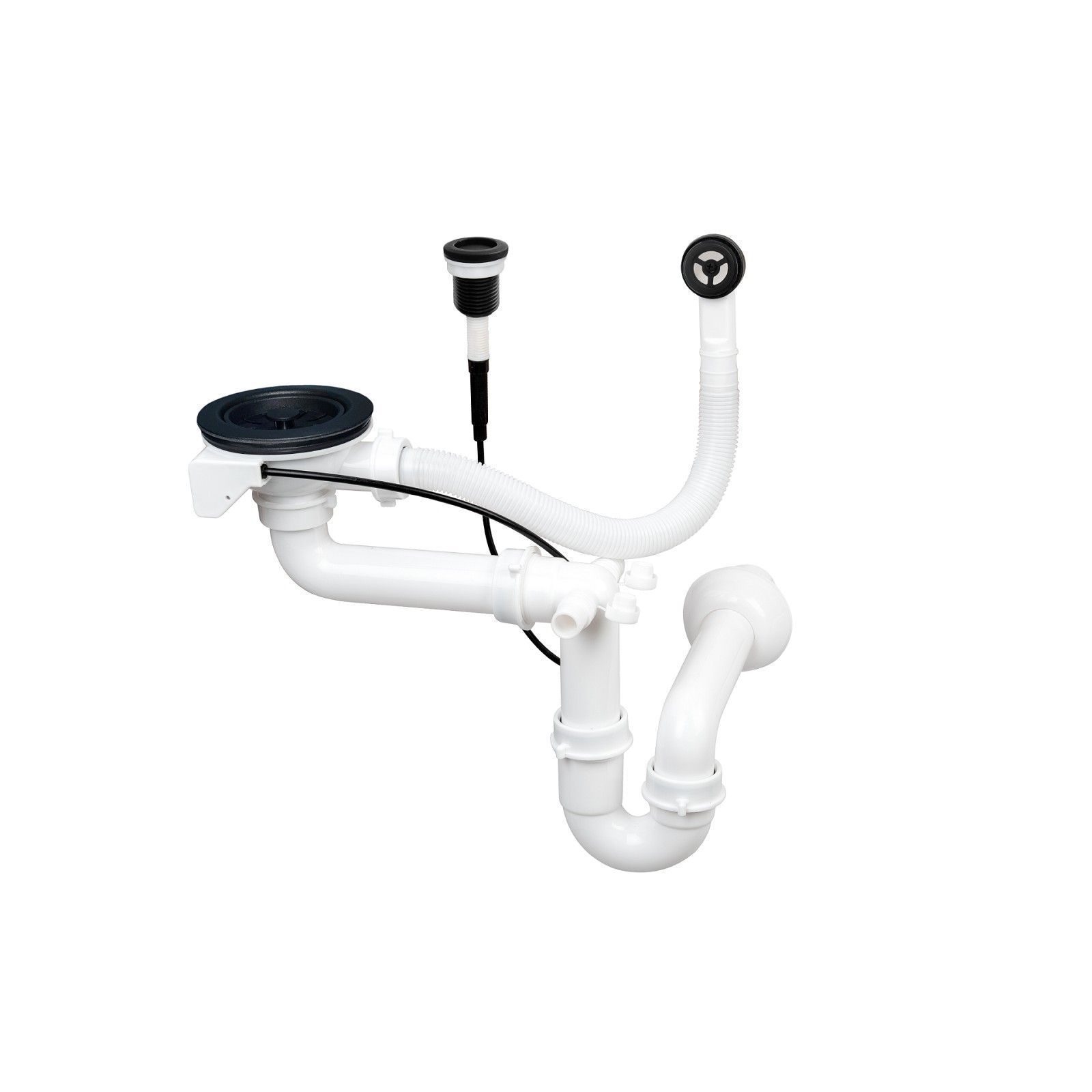 QLS Siphon Abflussgarnitur Ablauf Überlauf Abfluss 1 Becken Push Automatisch Black 10681