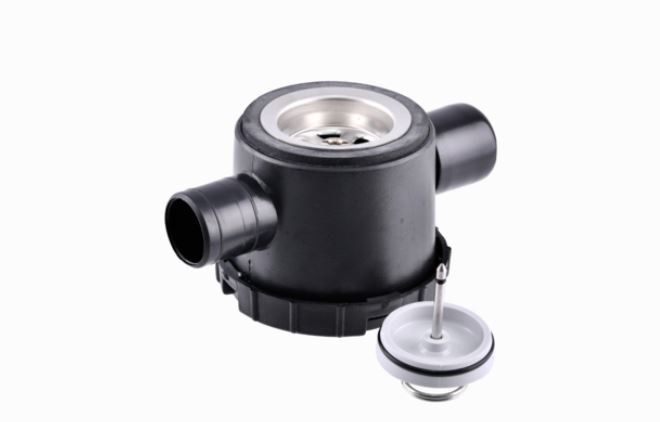 Siphon schwarz 33mm mit 2 Zugängen Ablauf Stöpsel + Stift, Rohrsystem 300f237 NEU