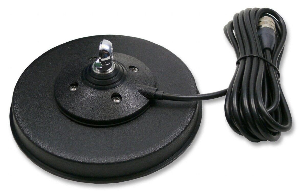 hochwertiger Magnetfuss passend für Antennen mit DV Anschluss Durchmesser des Fuss: ca. 160 mm inklusive ca. 360 cm RG-58 Kabel und montiertem PL-Stecker Für den Frequenzbereich 0 - 500 MHz (Amateurfunk Kurzwelle VHF UHF, CB Funk, Flugfunk, Betriebsfunk, Bündelfunk, BOS...) als Option erhältlich: Fl