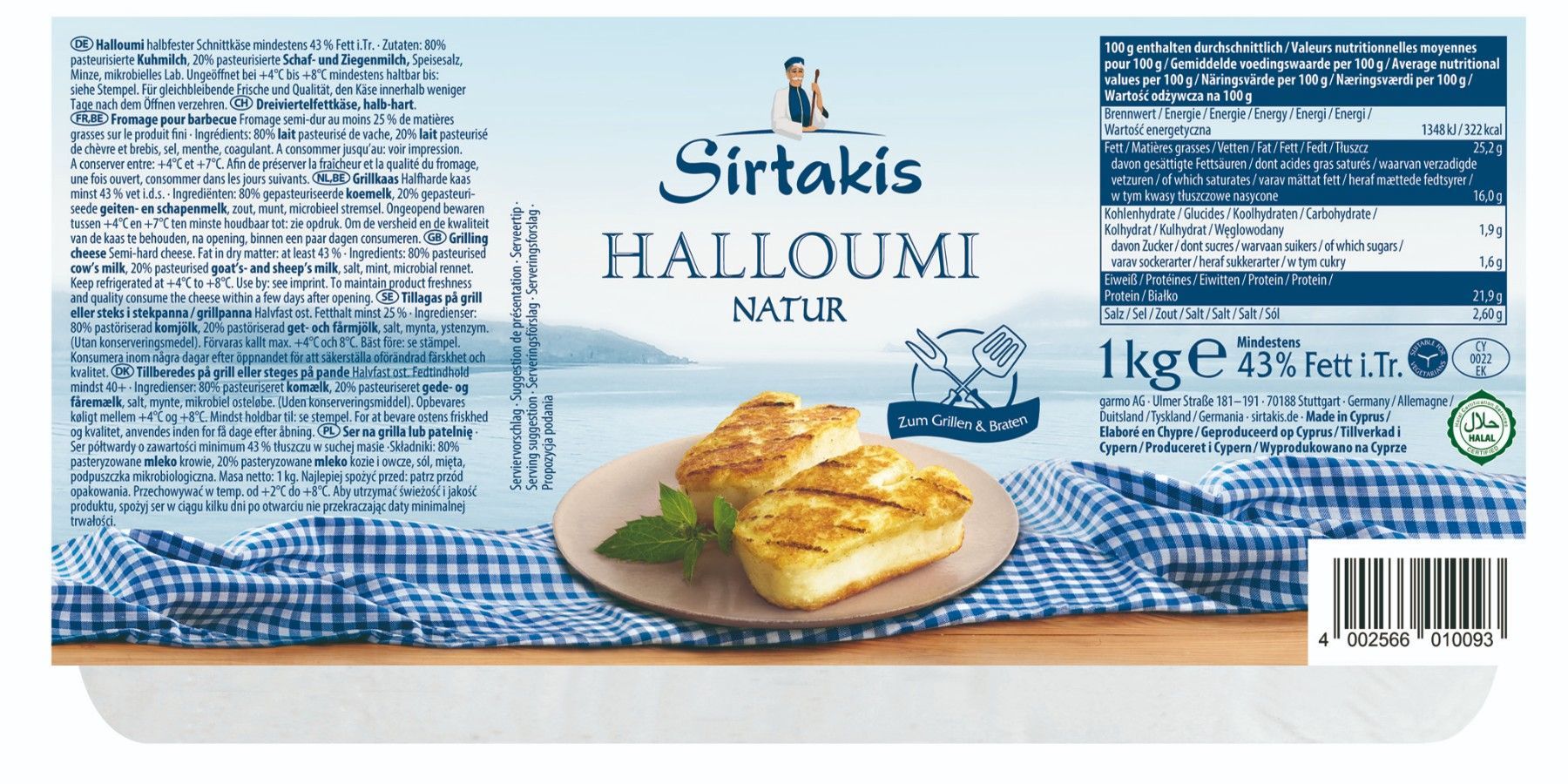 Sirtakis Halloumi Natur 1kg Grill-Käse Käse für Grill, Ofen & Pfanne aus Zypern