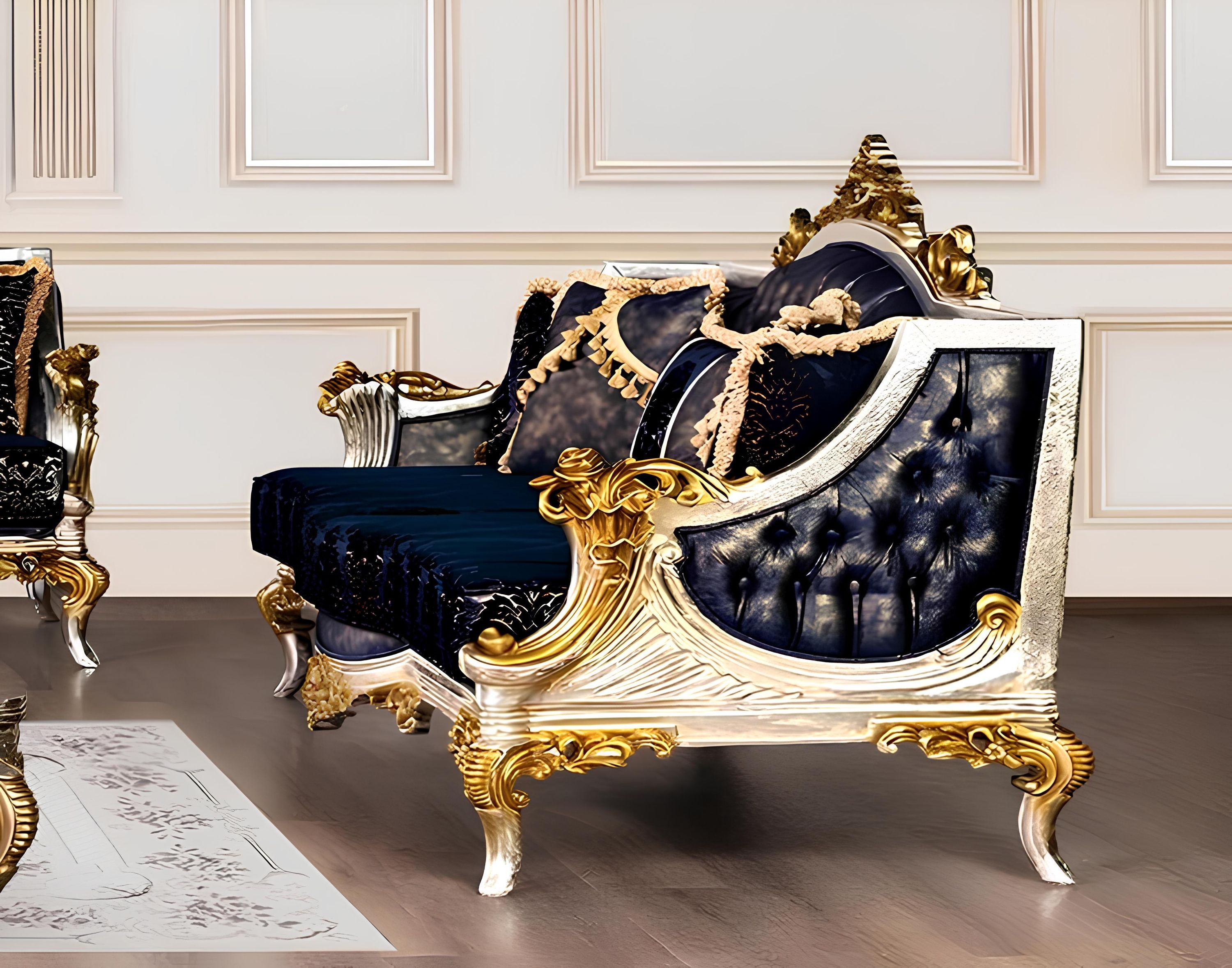 Sitz Dreisitzer Sofa 3 Sitzer Sofa Sofas Stoff Stil Barock Rokoko Klassische Neu
