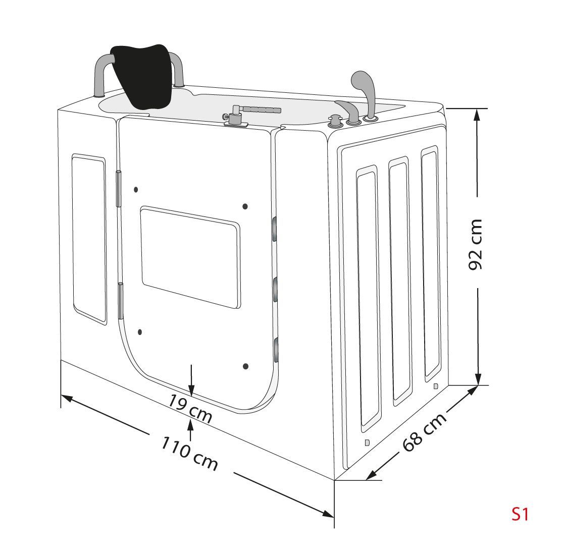 Sitzbadewanne Senioren Wanne Sitzwanne mit Tür S08-C-L 110x68cm