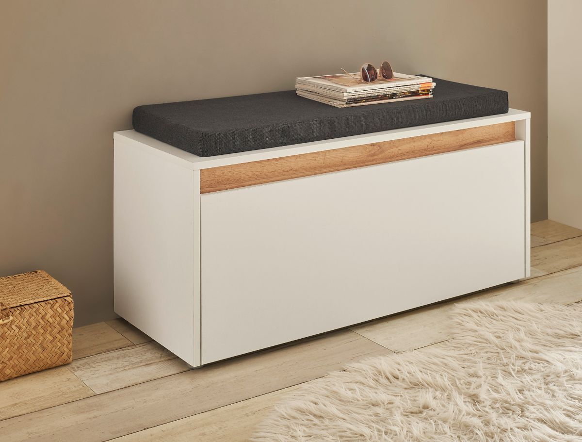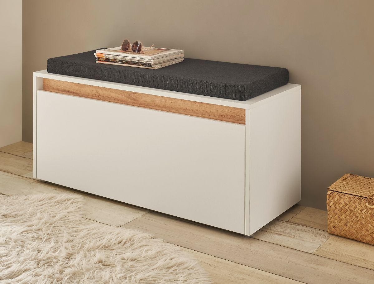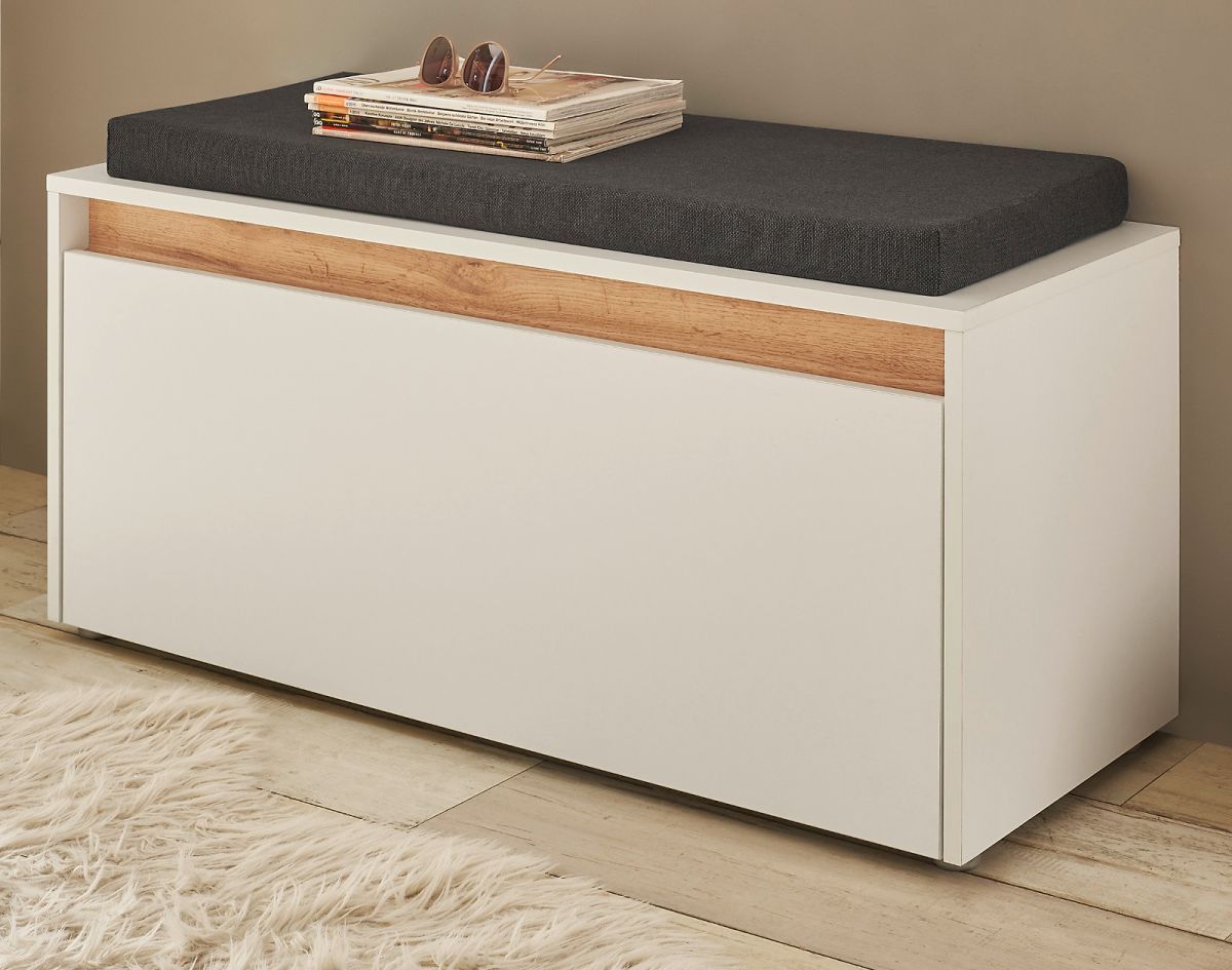 Sitzbank Garderobe Bank weiß Eiche für Flur Diele Garderobenbank Center 100 cm