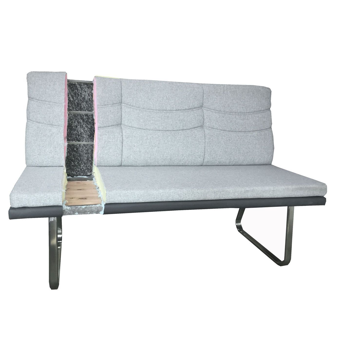 Mendler Sitzbank HWC-G54, Esszimmerbank Bank, Stoff/Kunstleder Edelstahl gebürstet
