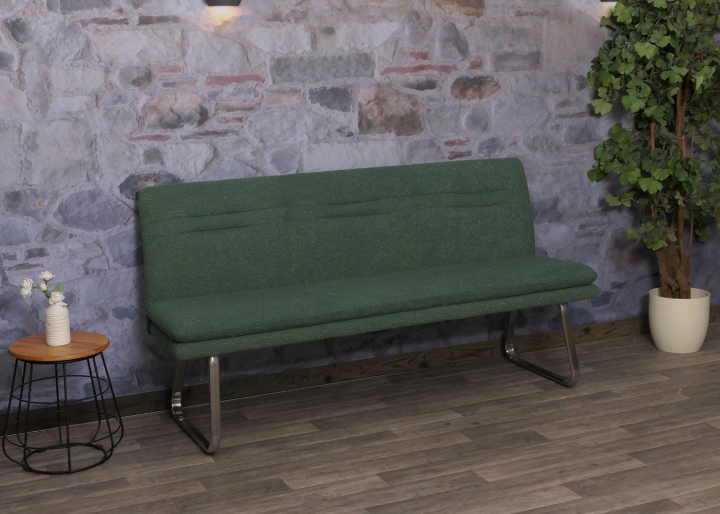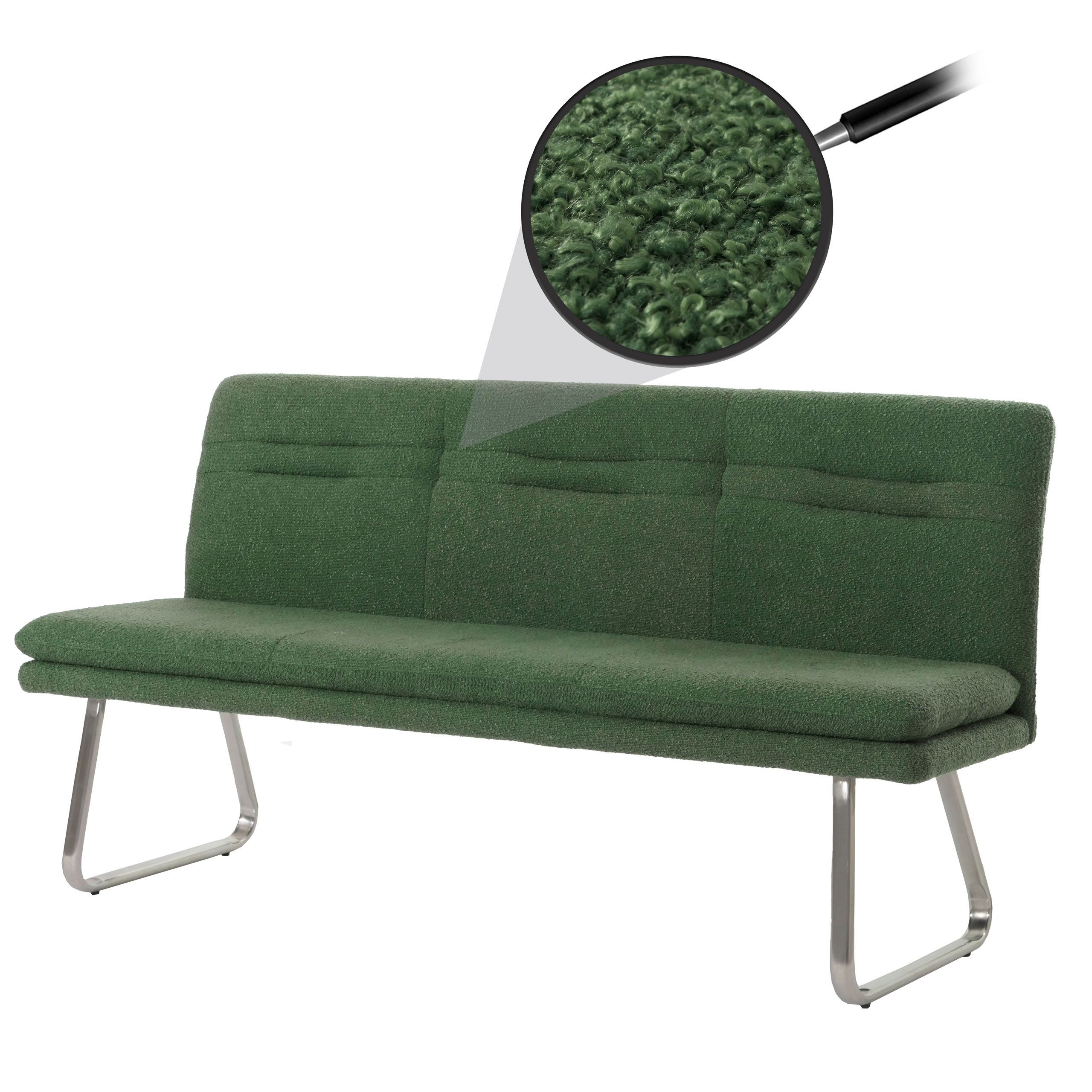 Mendler Sitzbank HWC-H70, Esszimmerbank, Lehne Stoff/Textil Bouclé Edelstahl gebürstet 180cm