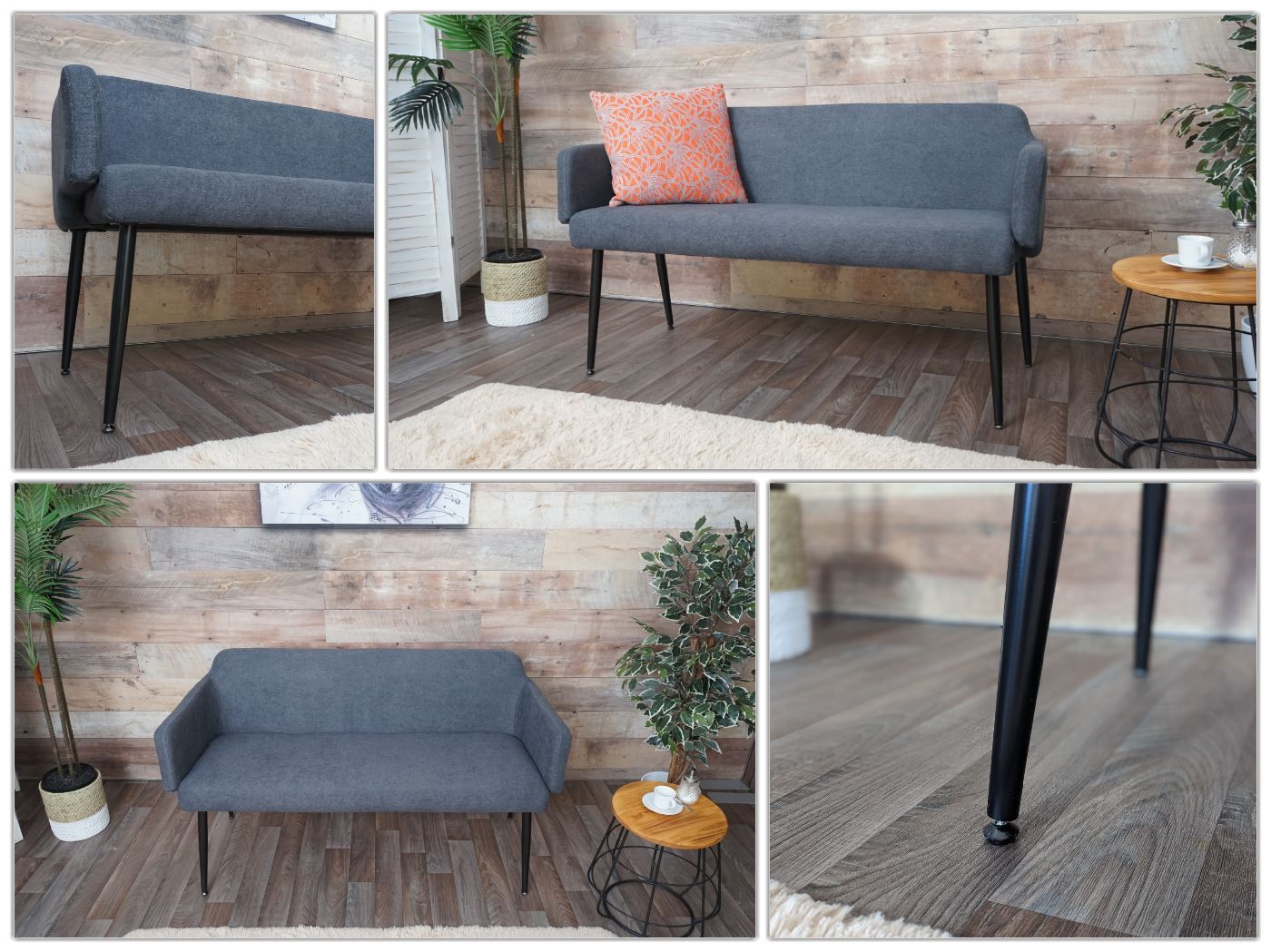 Mendler Sitzbank HWC-L13, Esszimmerbank Polsterbank Rückenlehne Armlehne Stoff/Textil 133cm
