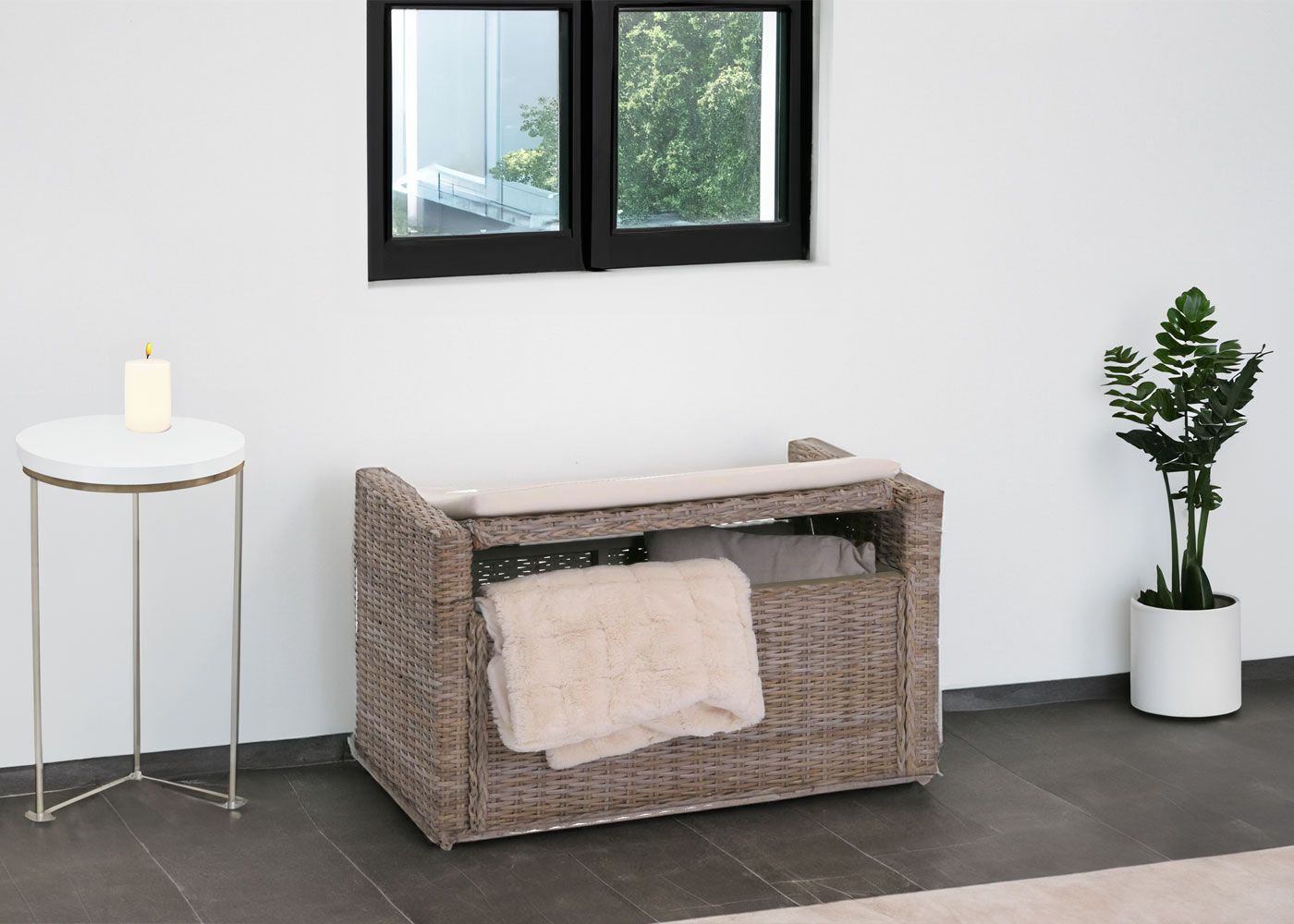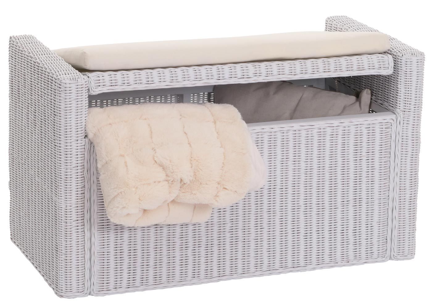Mendler Sitzbank M92 Garderobenbank Bank Sitzhocker mit Stauraum Kissen Kubu Rattan 88cm