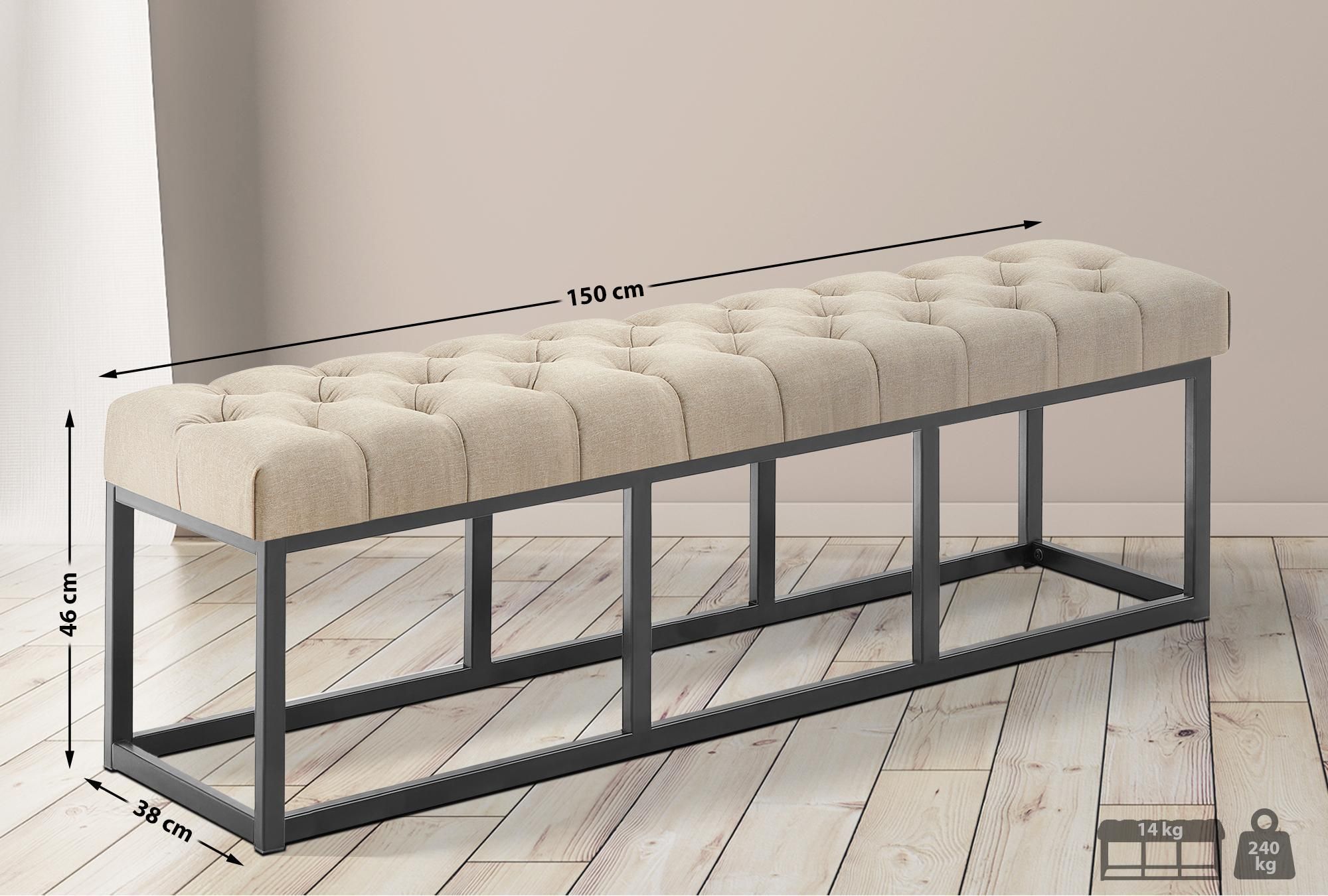 Sitzbank MEXICO Stoff Taupe 150x38x46 cm Sitzbank Flur Sitzhocker Esszimmerbank