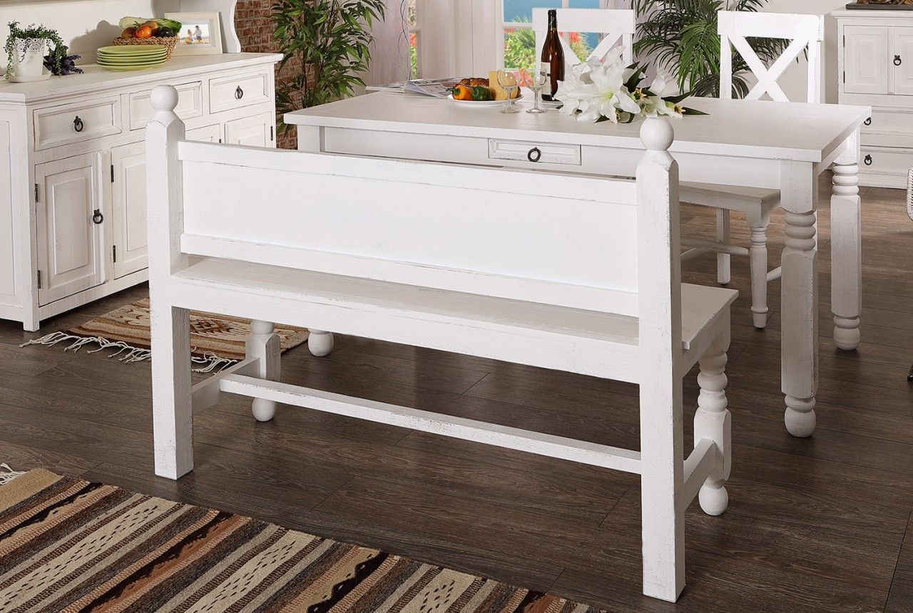 Sitzbank MEXICO Weiß Antik aus Massivholz für das Esszimmer