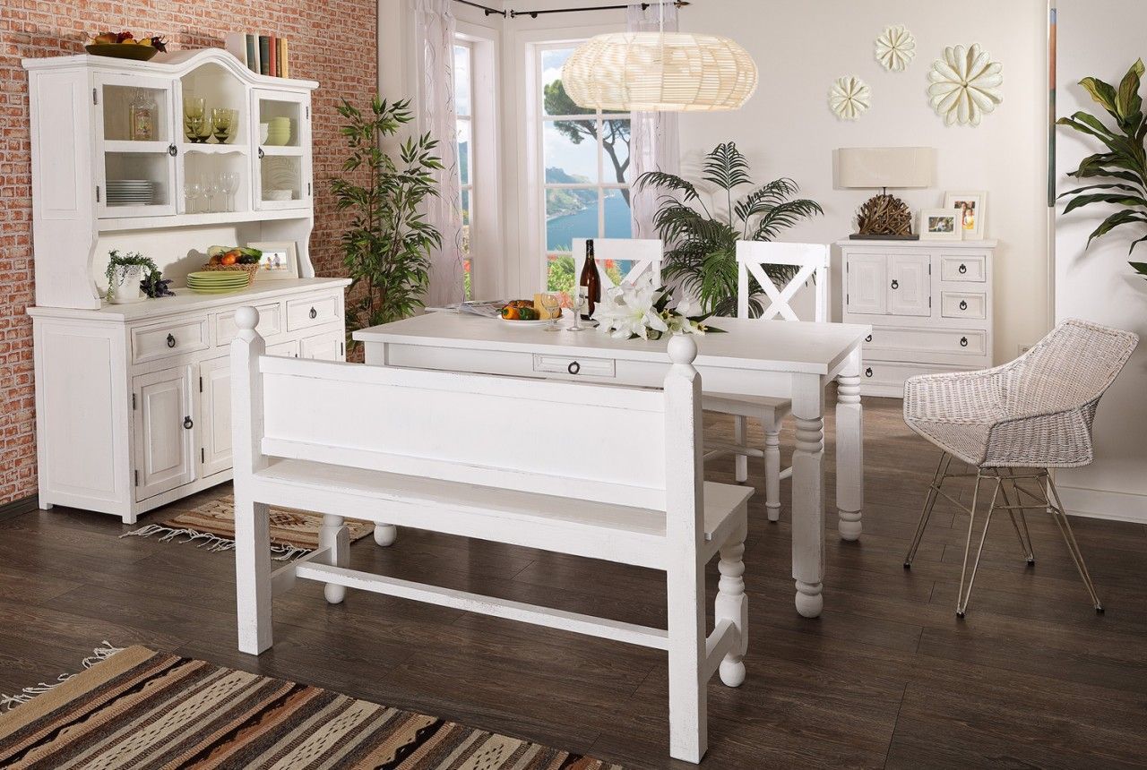 Die wunderschöne weiße Sitzbank MEXICO aus massivem Pinienholz sorgt für Country Flair. Gedrechselte Beine. Weitere Landhausmöbel aus der Serie finden Sie jetzt online.
