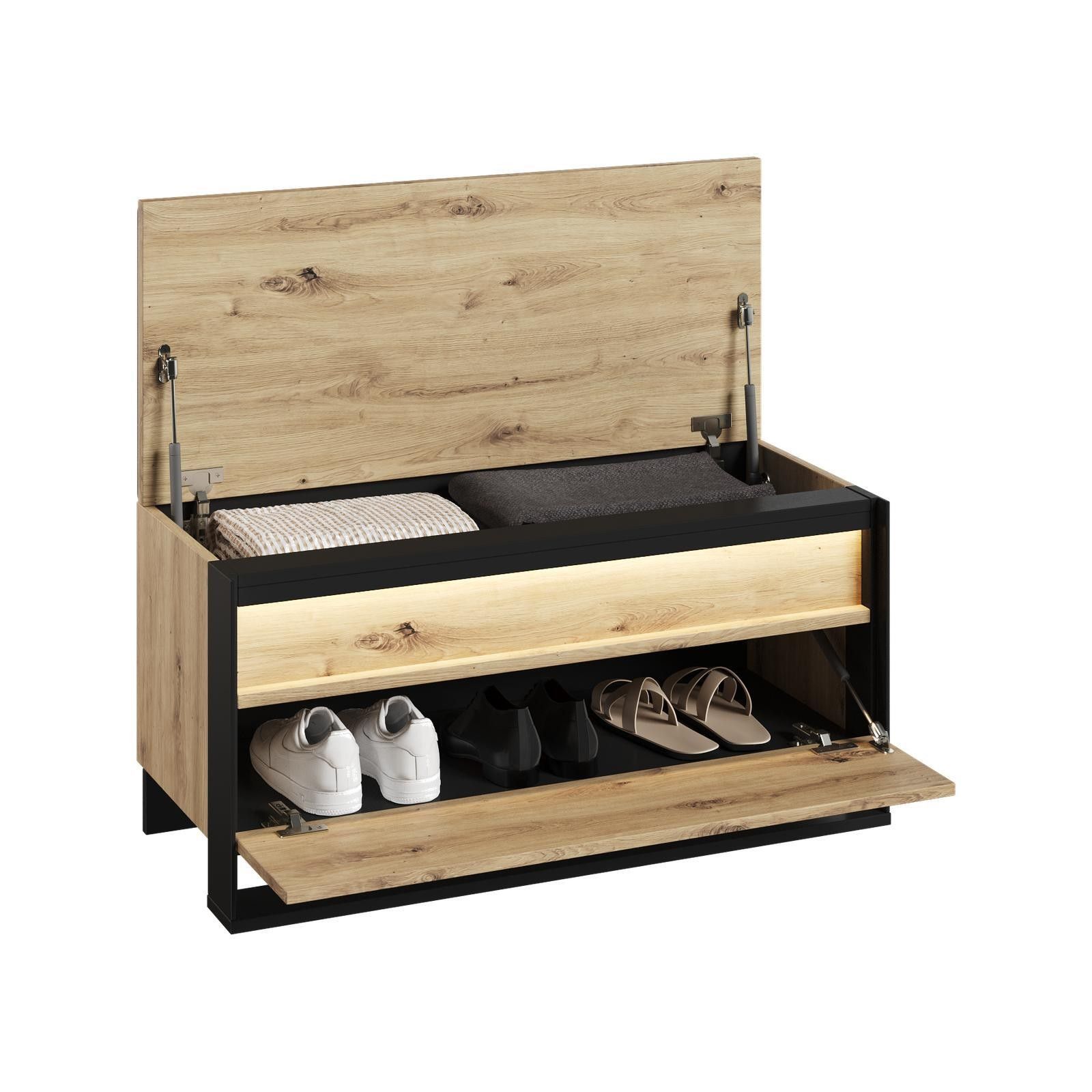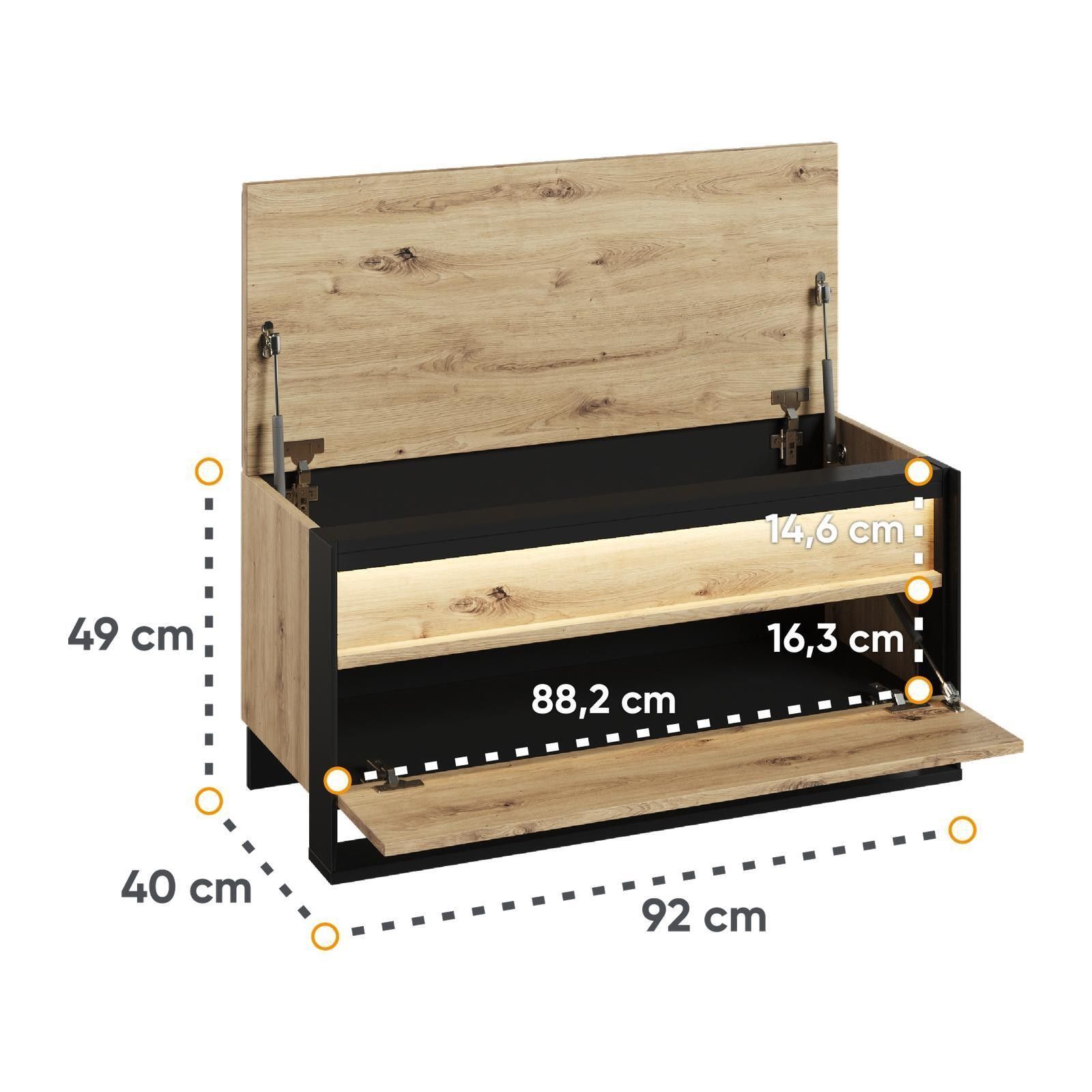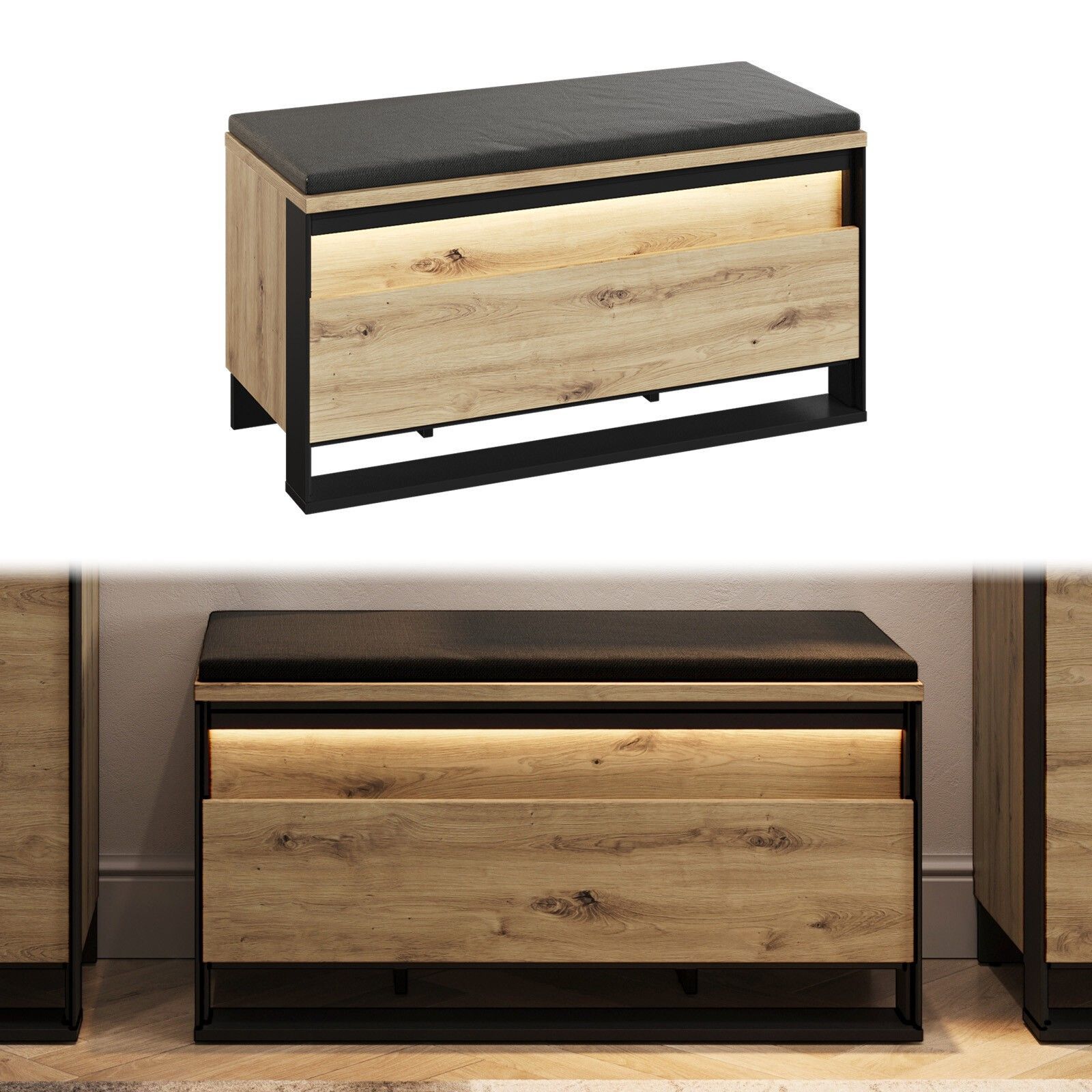 Sitzbank QUANT QG-03 mit Stauraum LED Bank Schuhschrank Polsterbank Loft