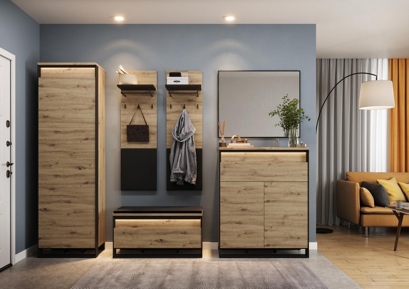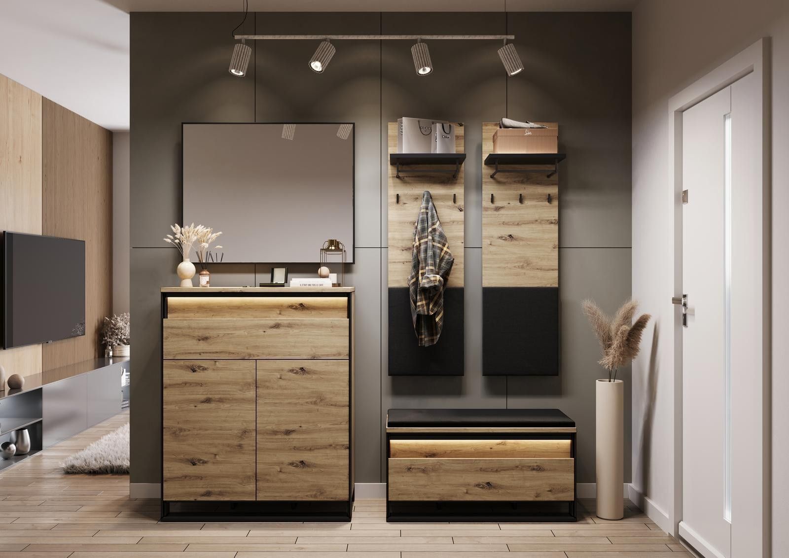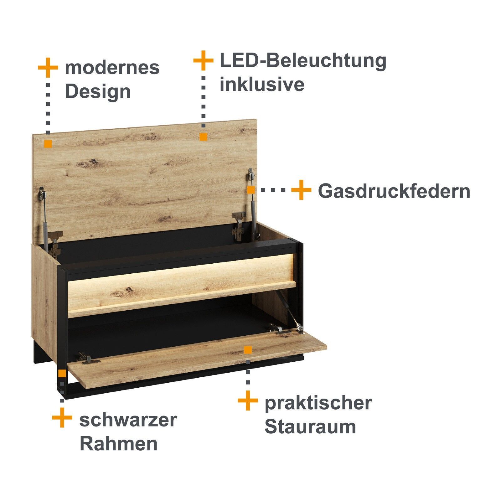 Sitzbank QUANT QG-03 mit Stauraum LED Bank Schuhschrank Polsterbank Loft