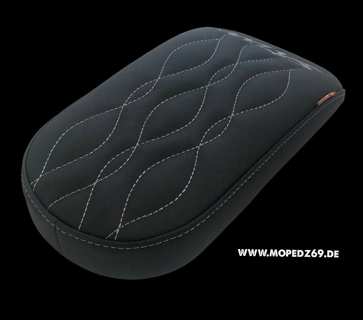 mopedz69-ArtikelNr.: 14104-1 Wir bieten ihnen hier Sitzbänke in kurzer, flacher Ausführung, gefertigt vom Sattler (Made in Germany!). Die Polsterung ist aus hochwertigem und komfortablen Verbundschaum, der Bezug aus edlem Kunstleder, wie auch die Bodengruppe, die Sitzfläche ist wellenförmig bestickt