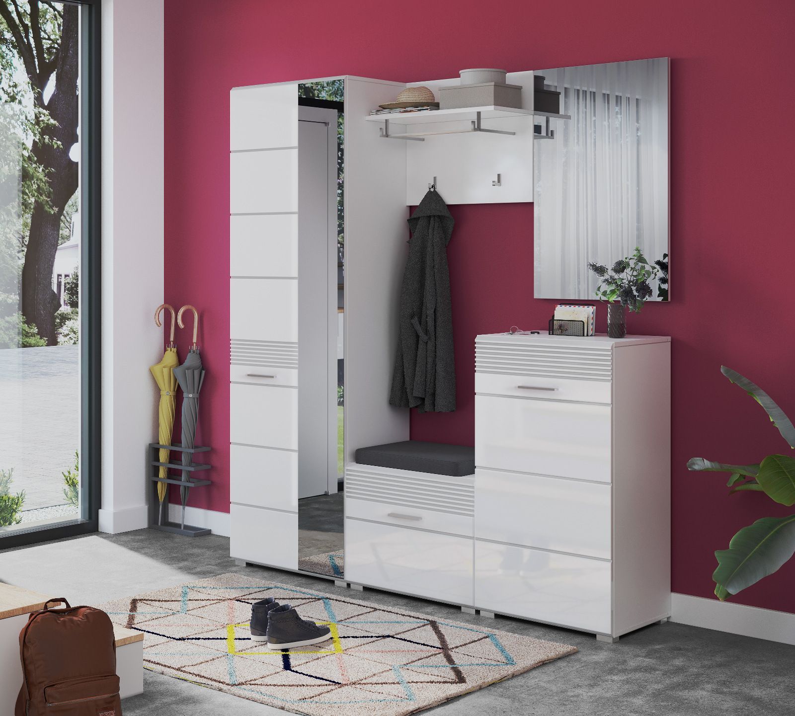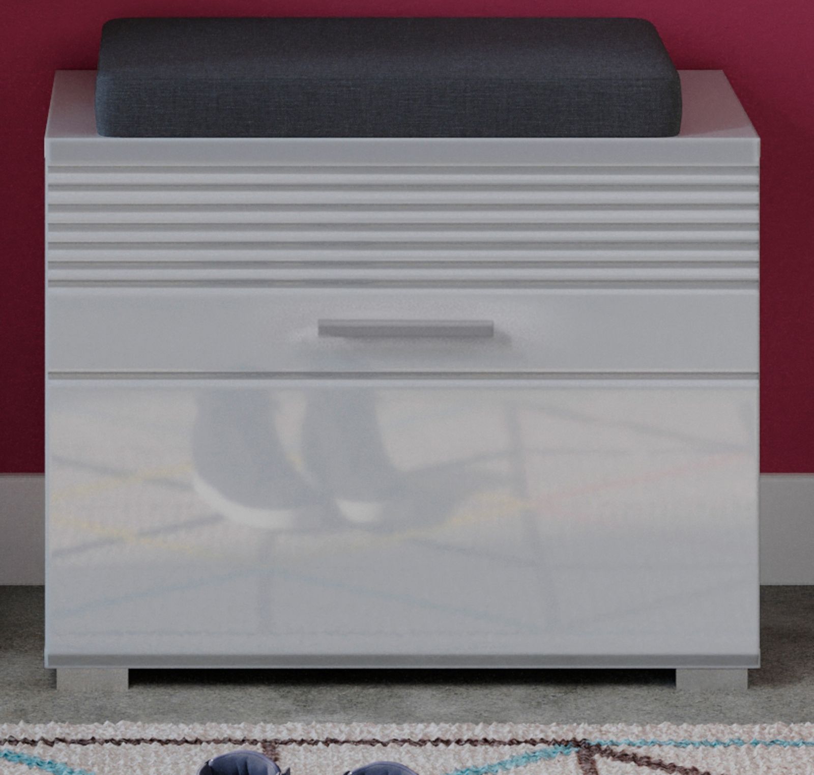 Sitzbank weiss Hochglanz Bank Schuhbank Flur Diele Schuhschrank Garderobe Leon