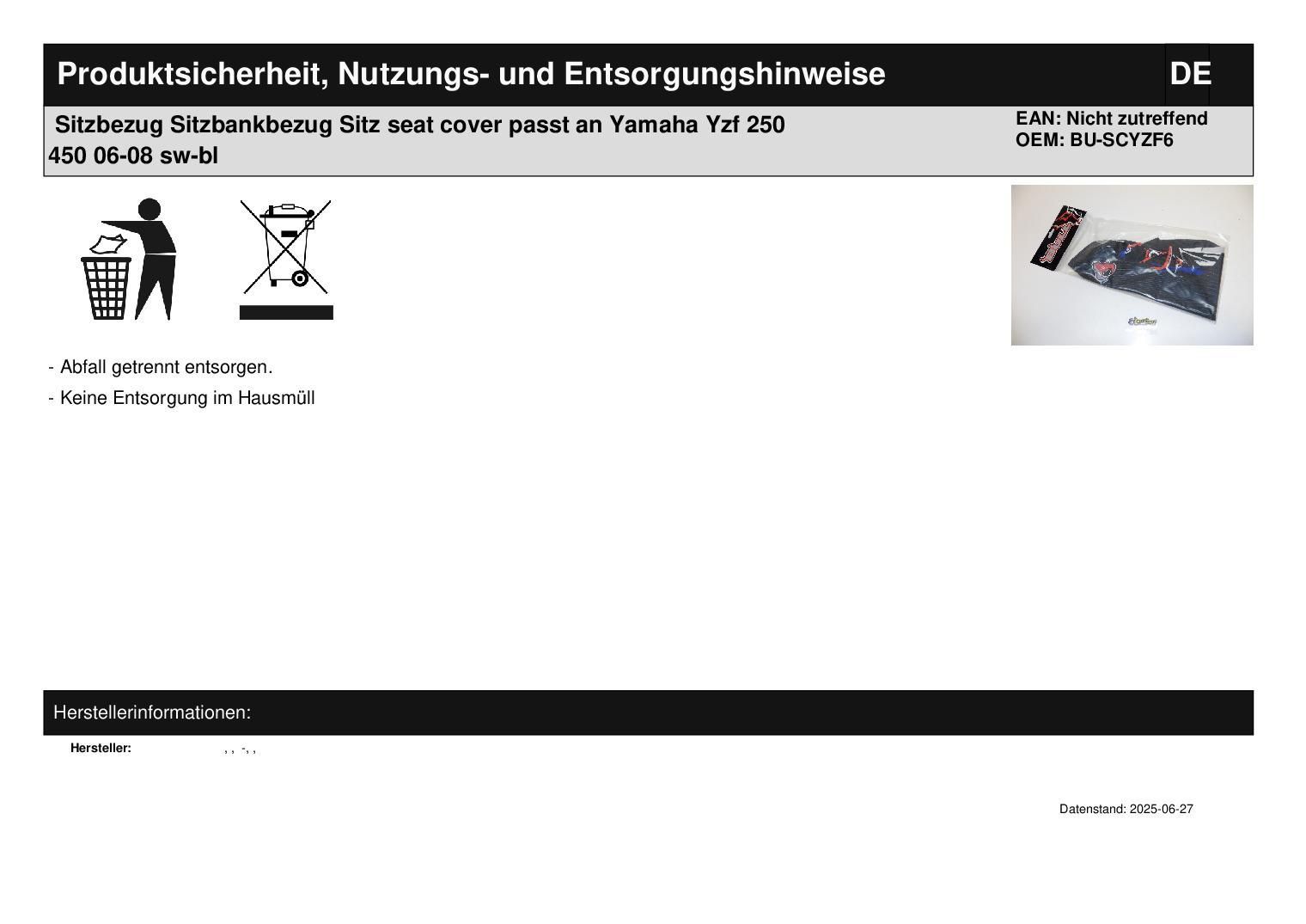 Sitzbezug Sitzbankbezug Sitz seat cover passt an Yamaha Yzf 250 450 06-08 sw-bl In dieser Auktion gibt es folgenden Artikel zu kaufen: Sitzbankbezug (siehe Foto) Fahrzeug: passend für Yamaha YZF 250 Bj.: 06 - 08 YZF 450 Bj.: 06 - 08 Lieferumfang: siehe Foto Artikelzustand: neu aus Geschäftsauflösung