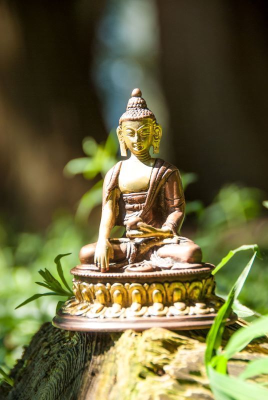 Sitzender Buddha auf Sockel Messing H: 12 cm 520 g Figur Statue Skulptur