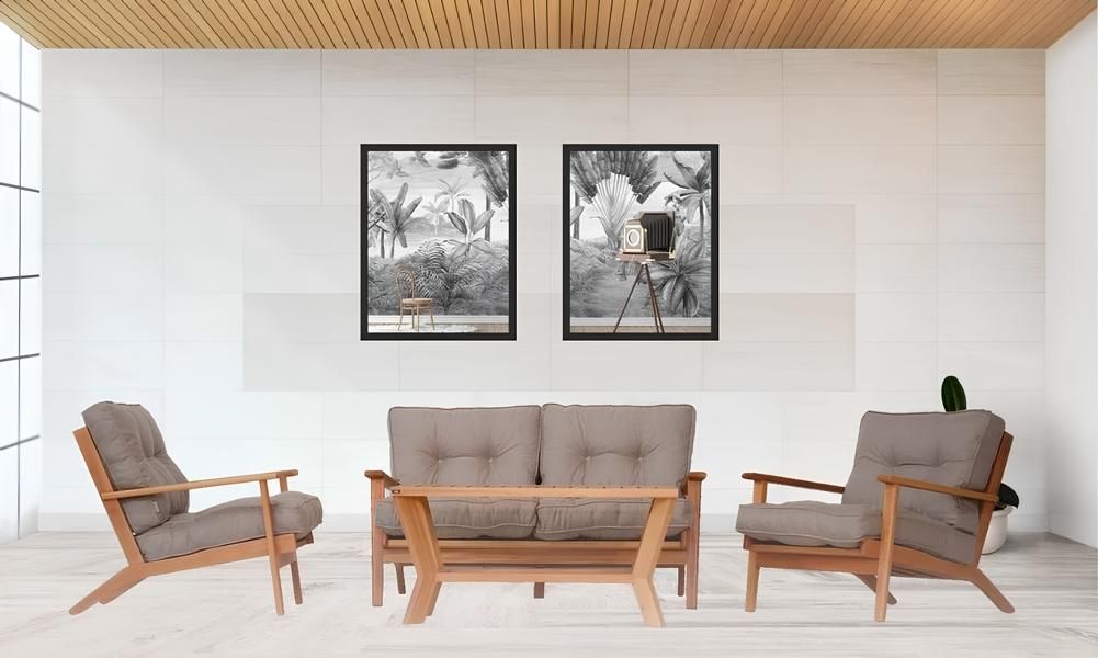 Sitzgruppe Gartenmöbel Sitzgruppe Sofa Holz Sitzer Grau Set 3tlg