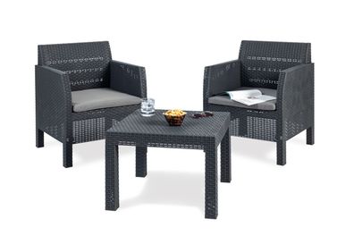 • Balkonset Matilde anthrazit mit Sitzkissen Sitzgruppe Gartenmöbel Balkonmöbel