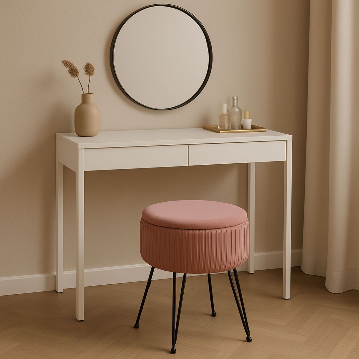 Mendler Sitzhocker HWC-K47, Hocker mit Staufach, Ø 33cm, Samt-Optik