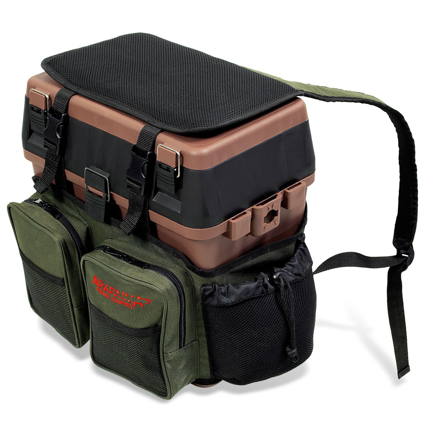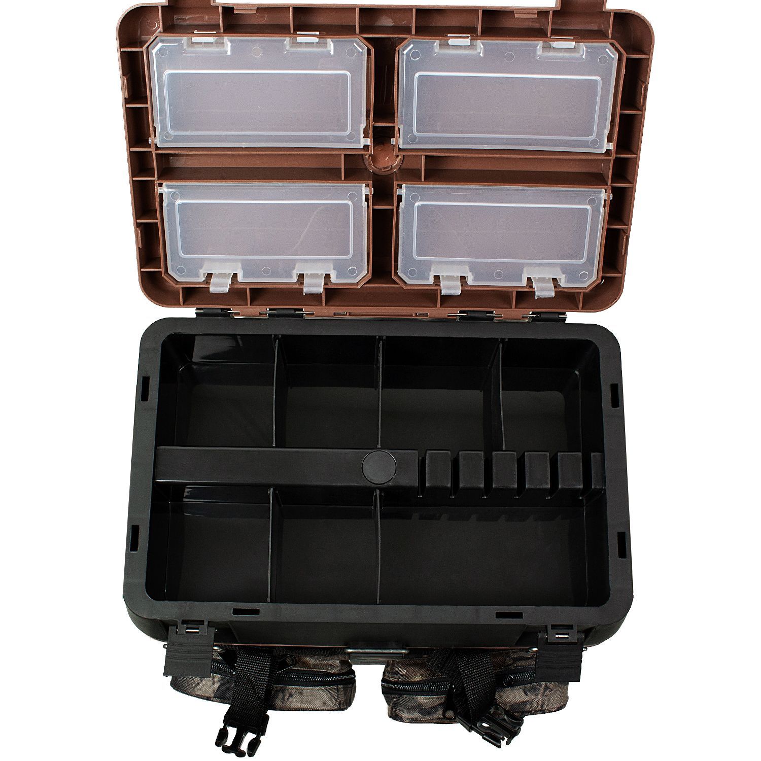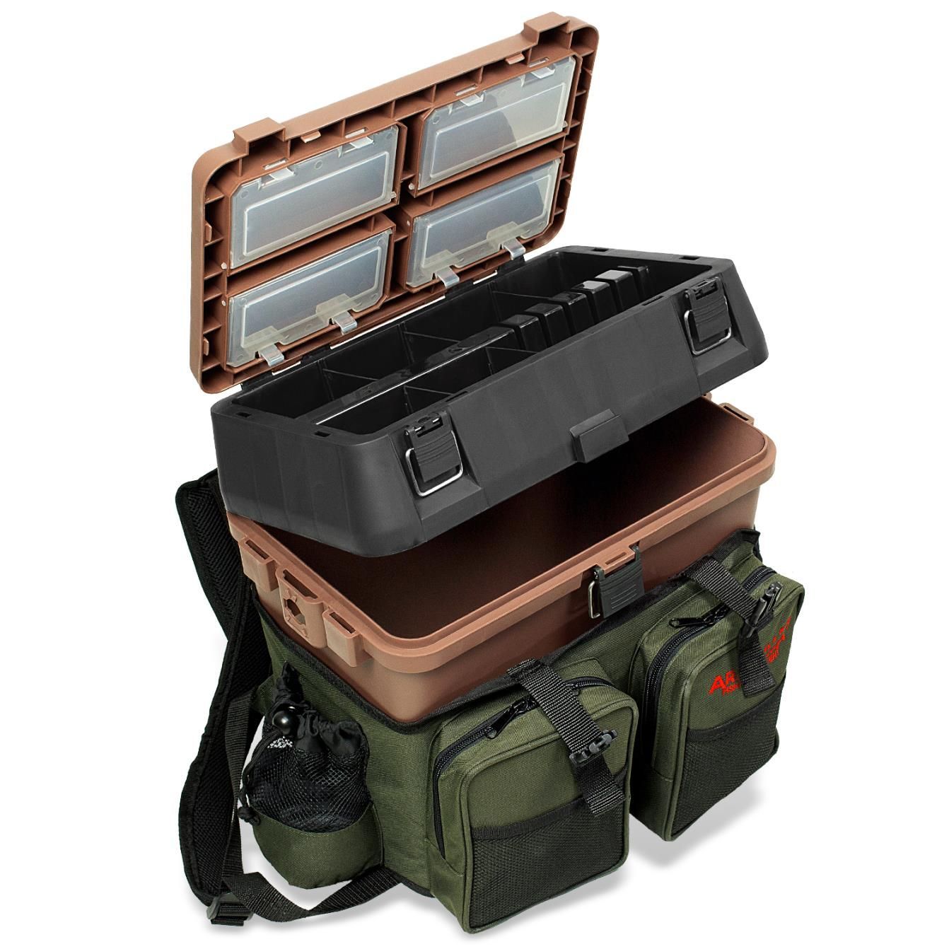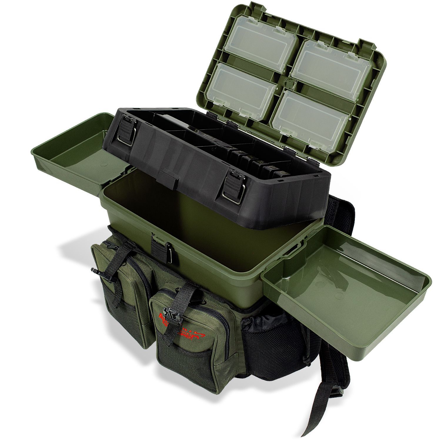 Sitzkiepe Angelbox Rucksack mit 4 Tackleboxen - Gerätekasten mit Sitzpolster,
