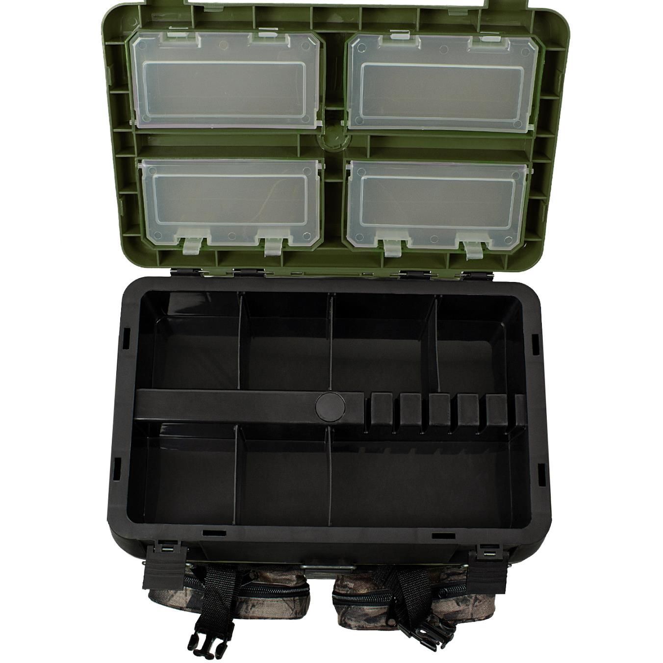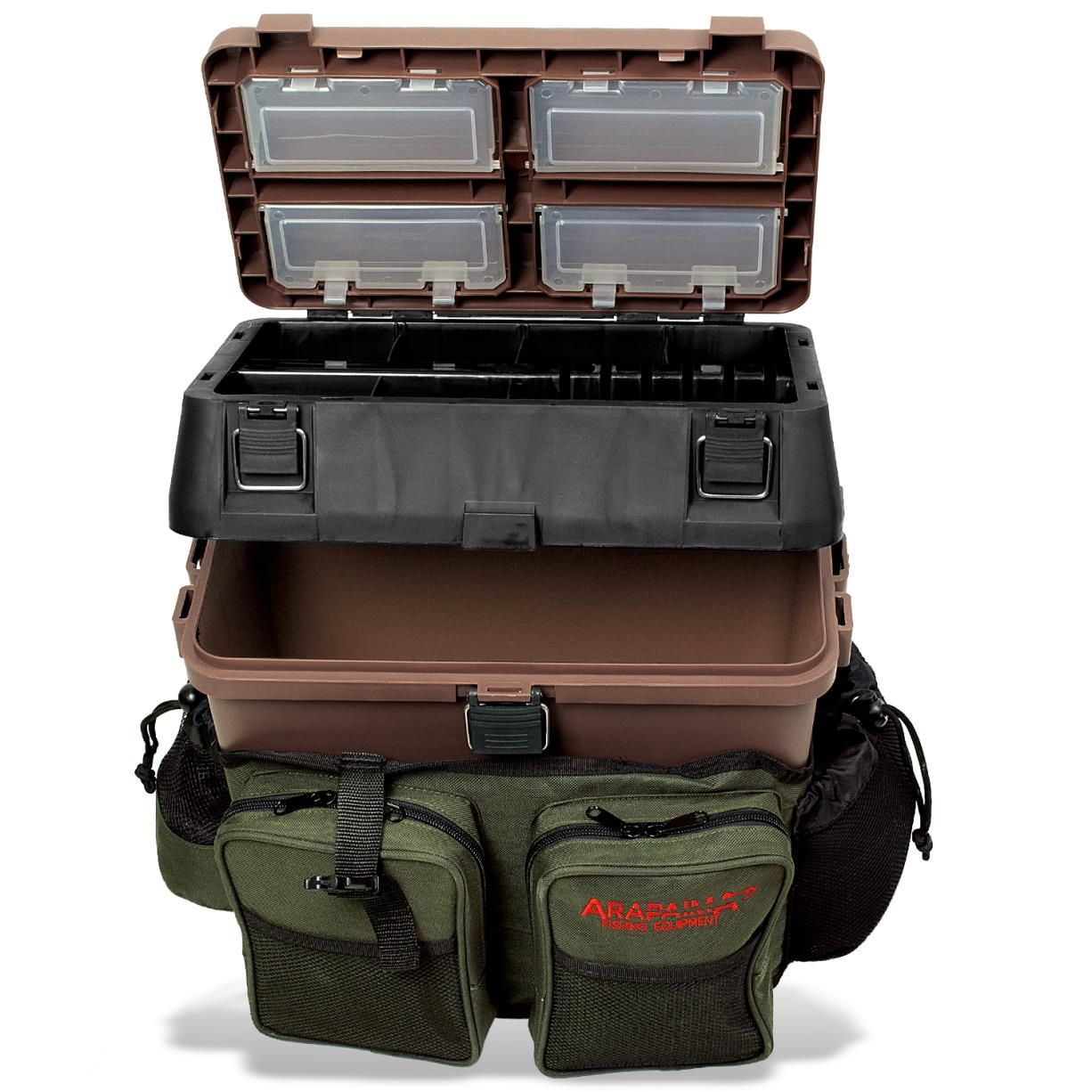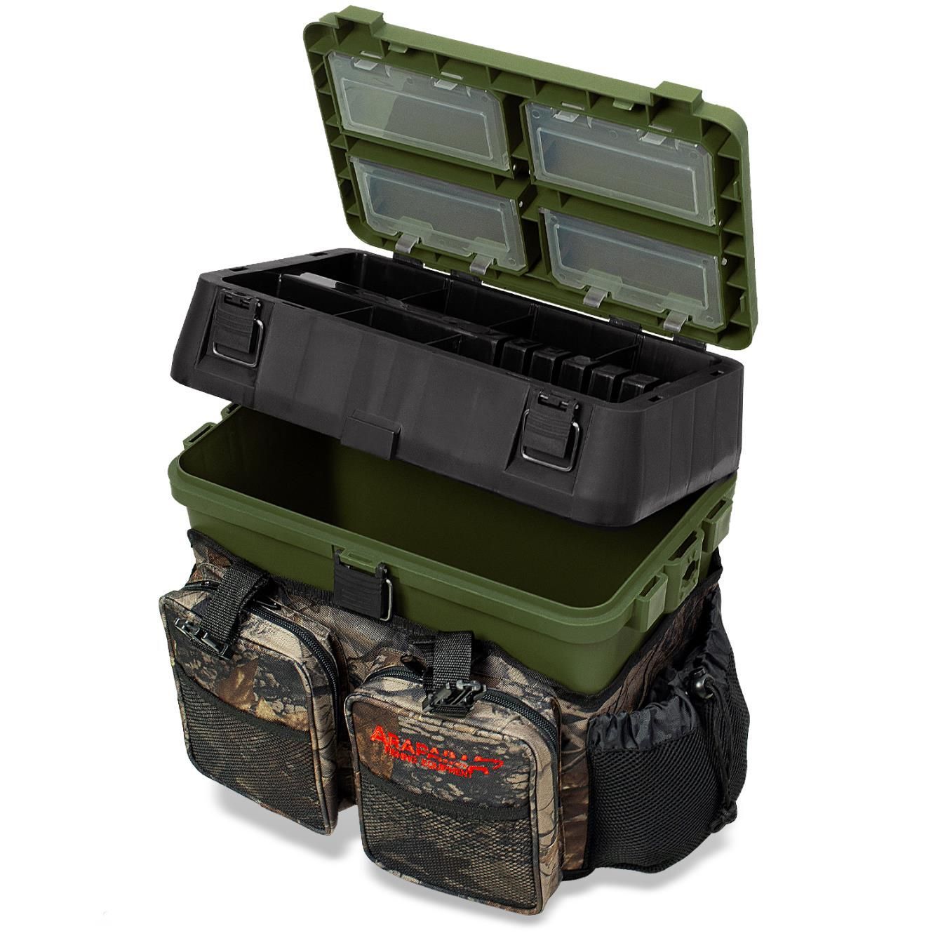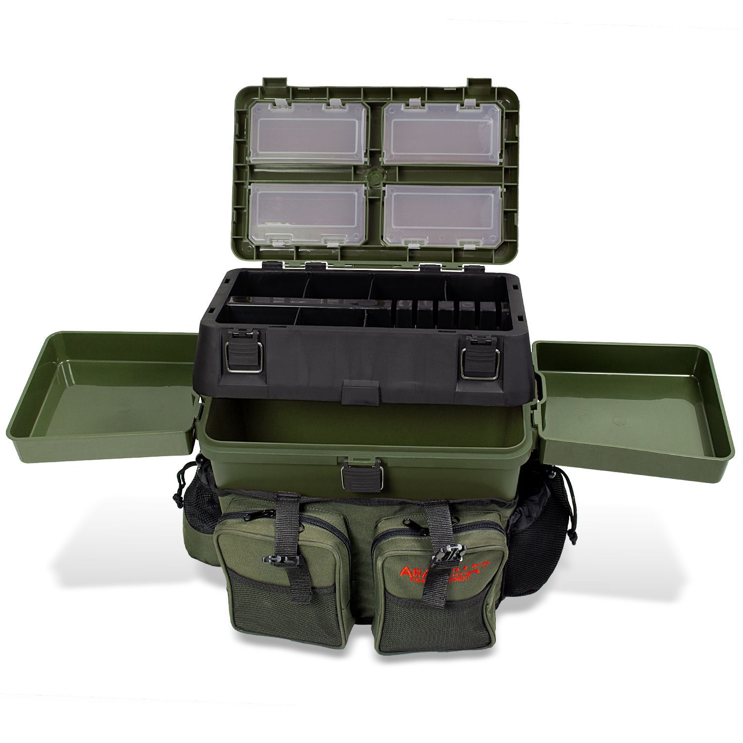 Sitzkiepe Angelbox Rucksack mit 4 Tackleboxen - Gerätekasten mit Sitzpolster,